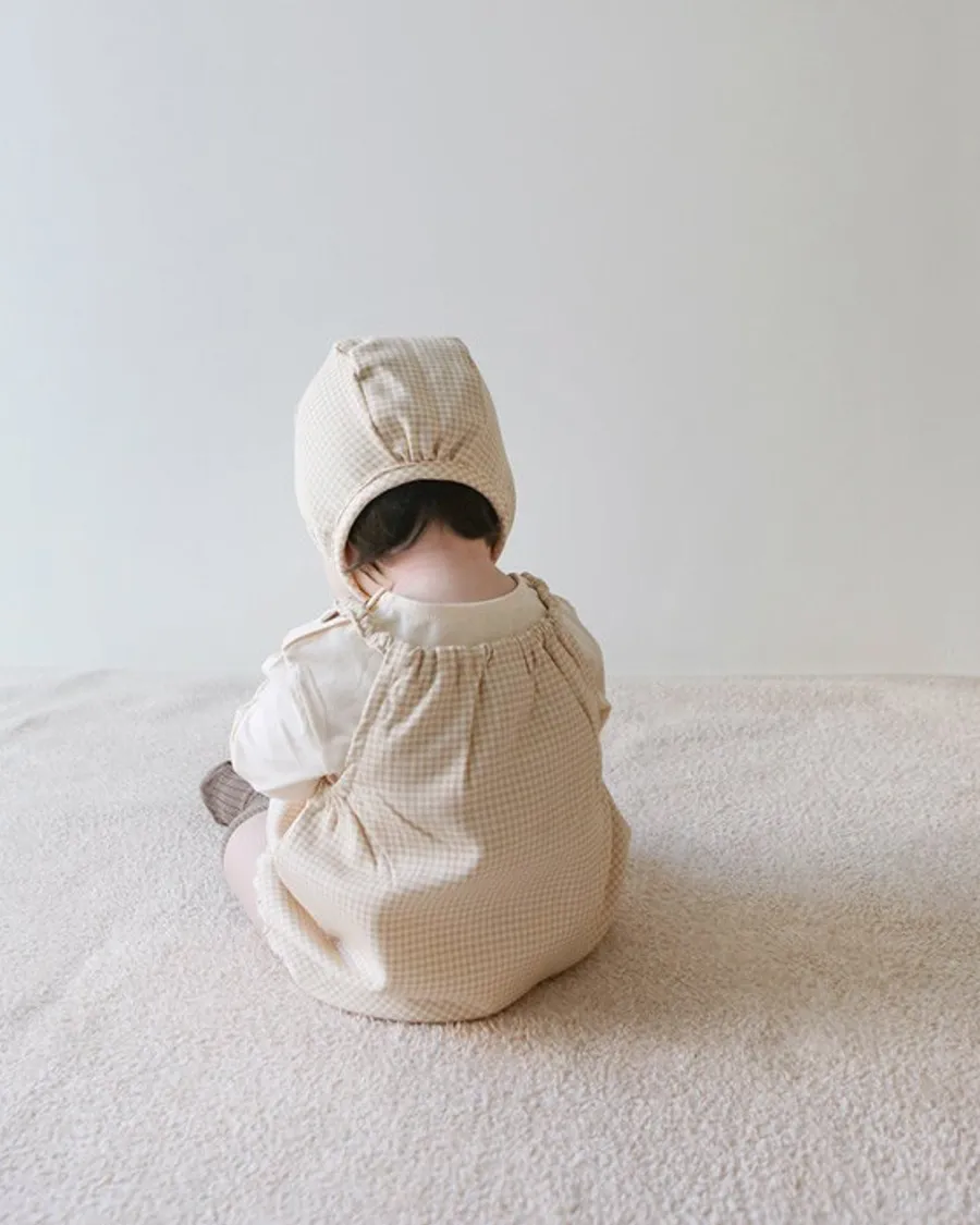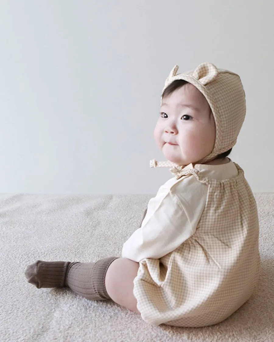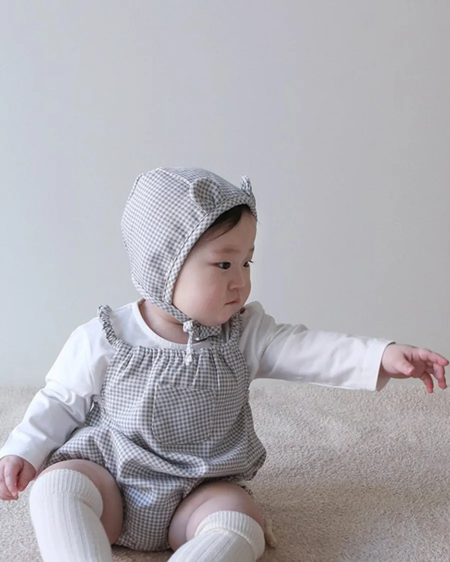 25S009-格紋口袋包屁衣(含帽)