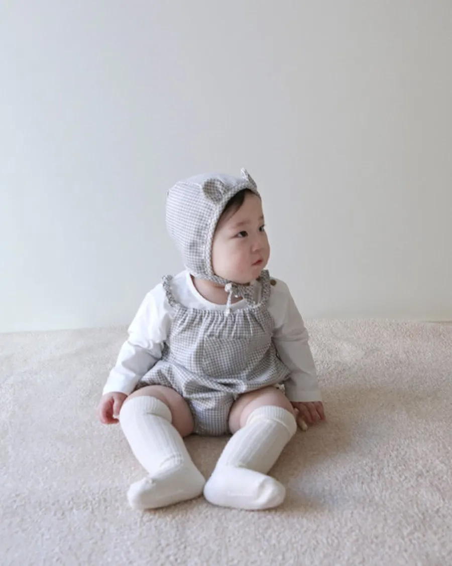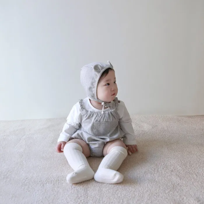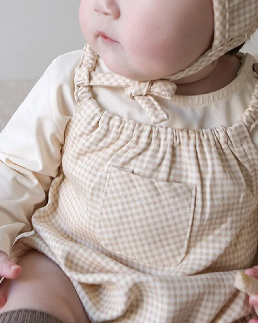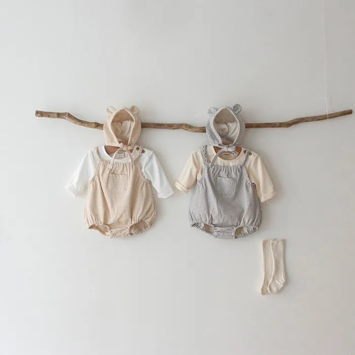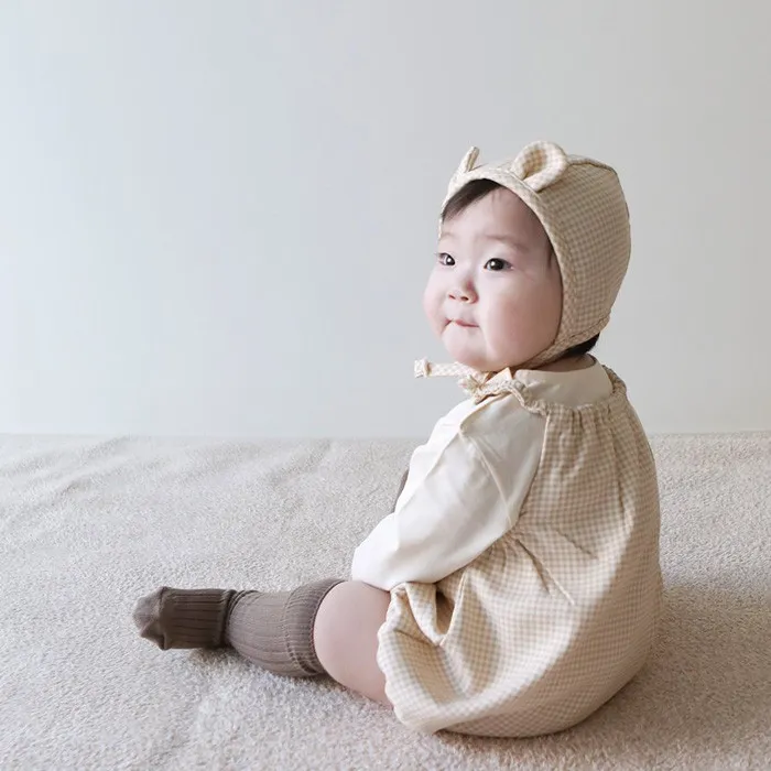 25S009-格紋口袋包屁衣(含帽)