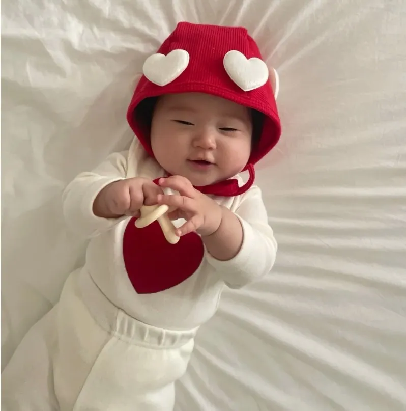 25S010- 立體愛心綁帶帽
