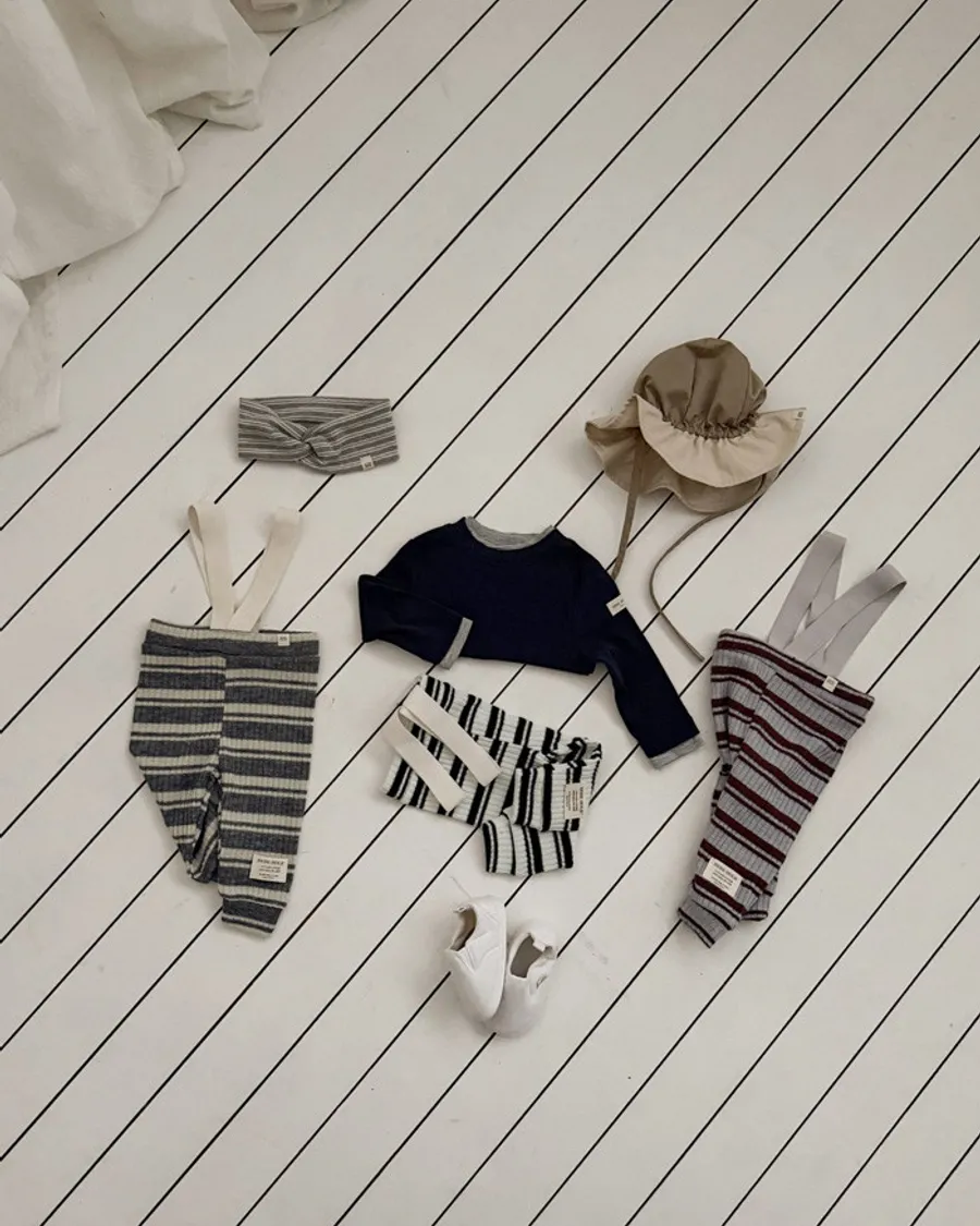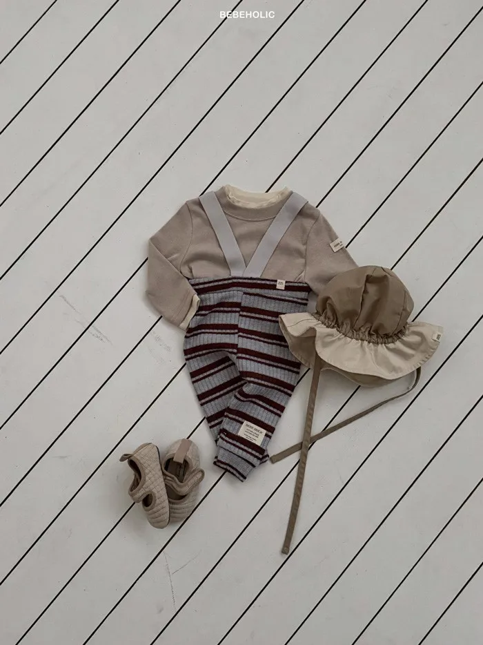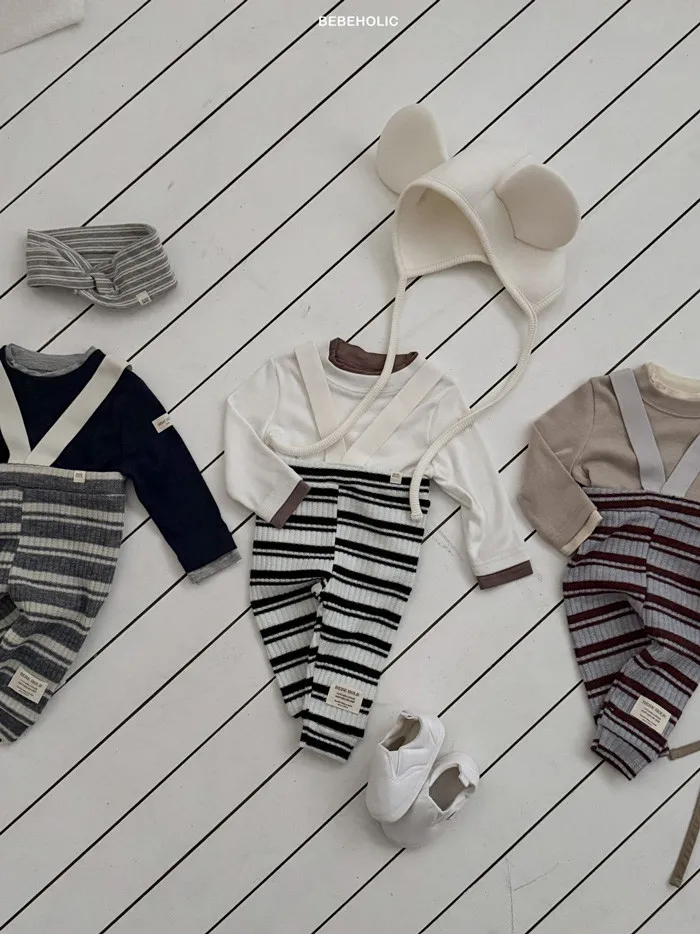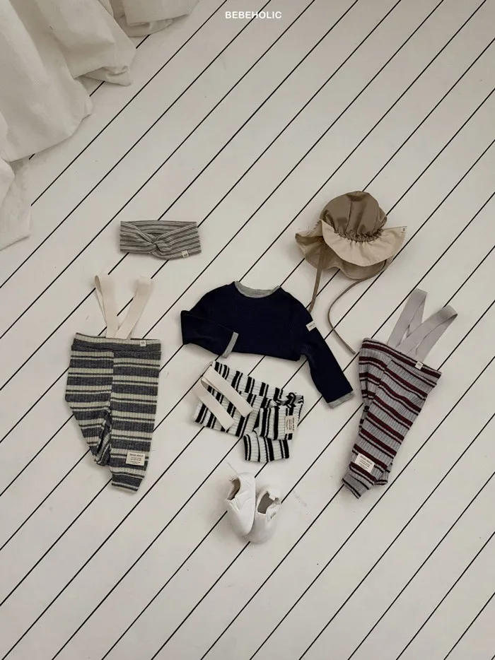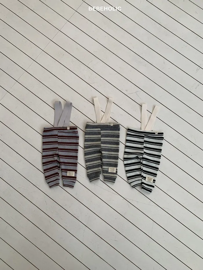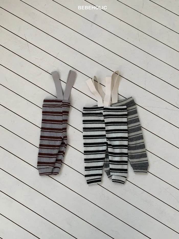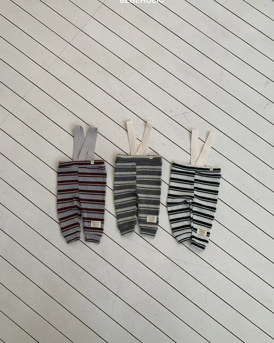 26S001- 條紋彈力吊帶褲