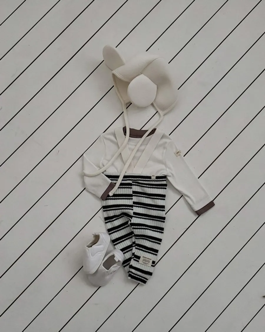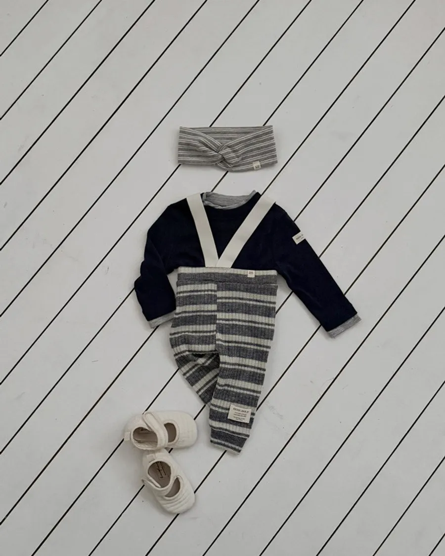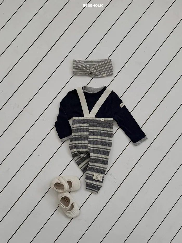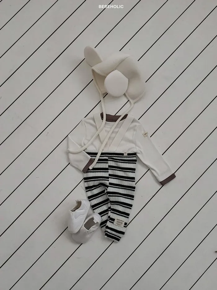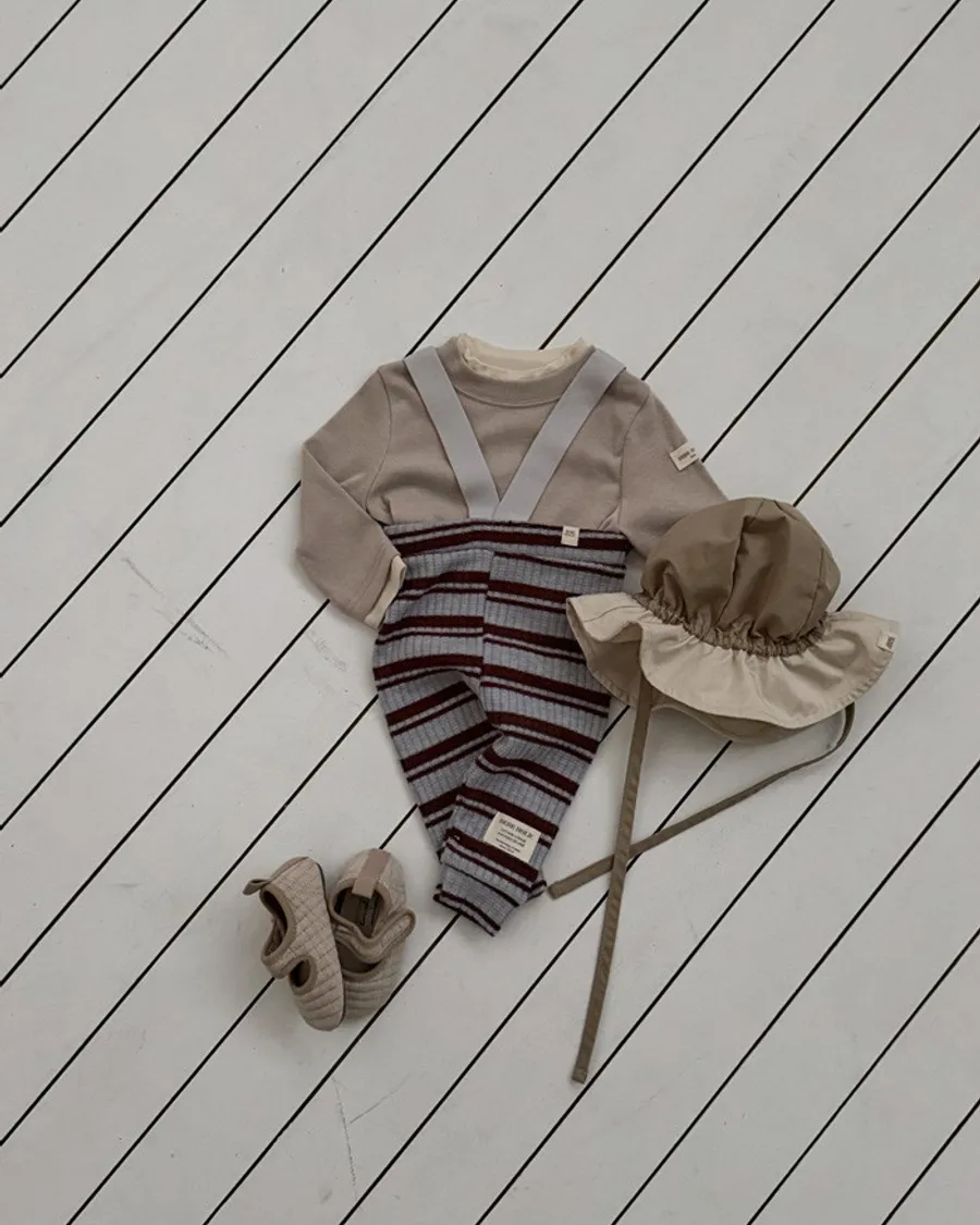 26S001- 條紋彈力吊帶褲