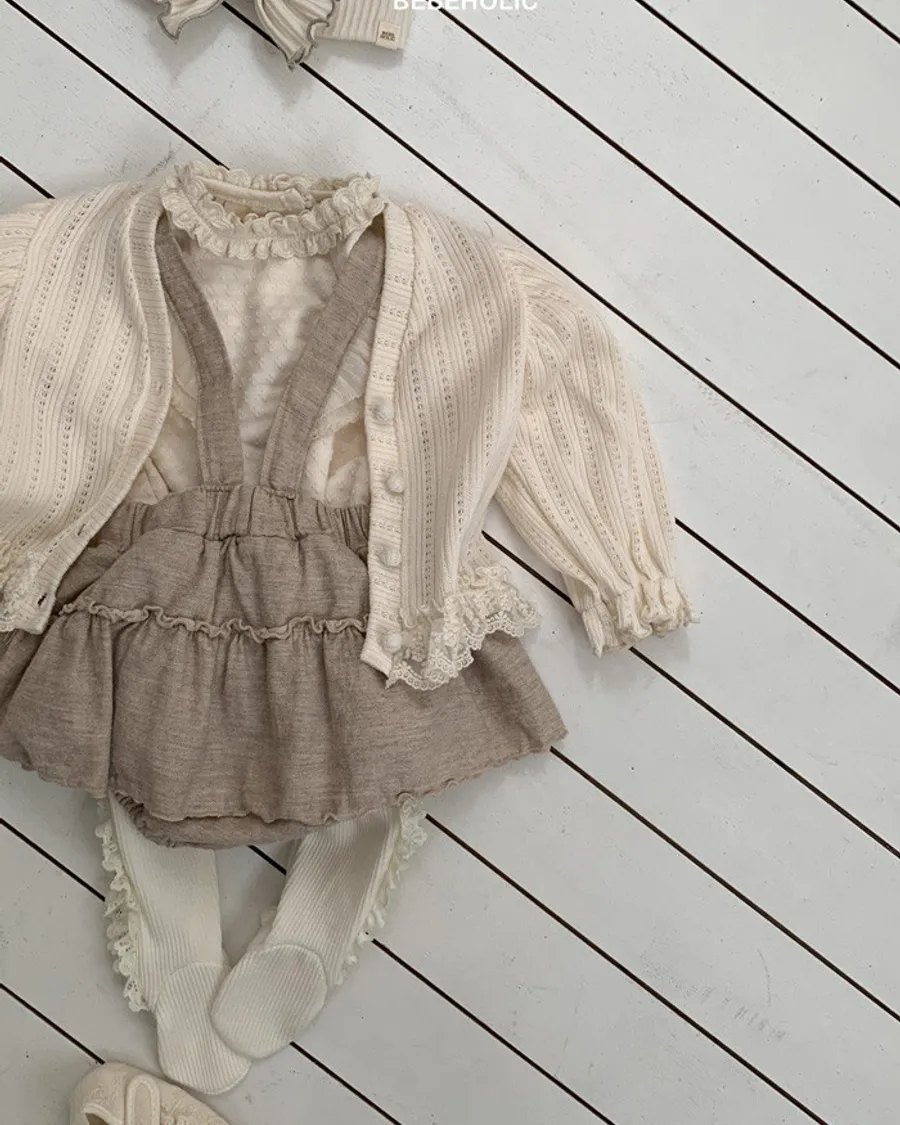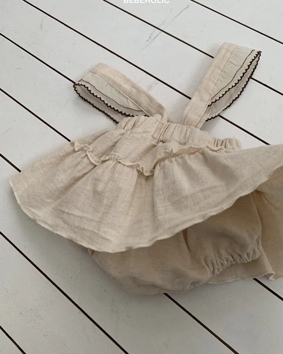 26S001- 奶油擠花滾邊吊帶裙