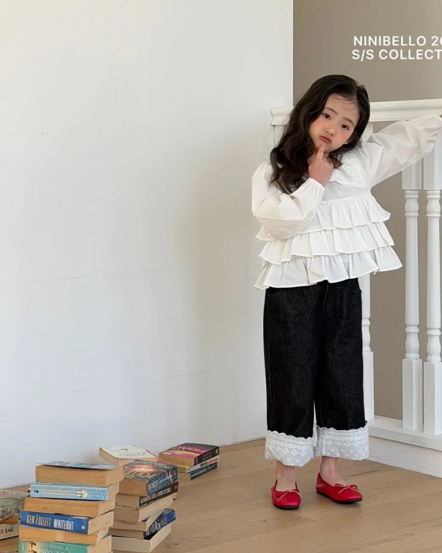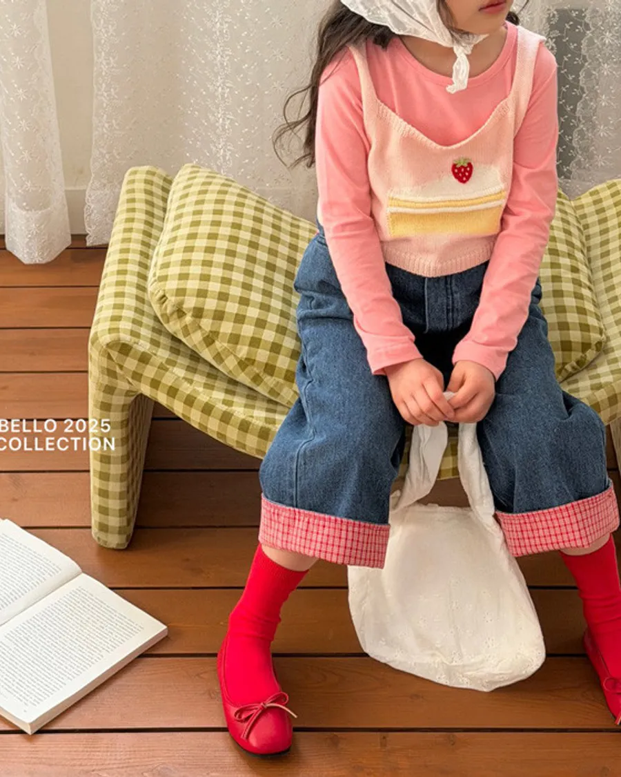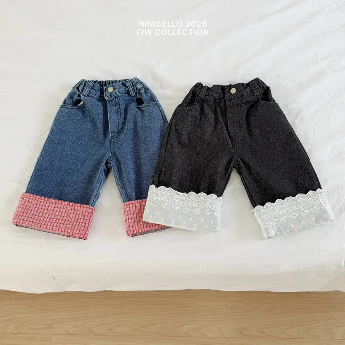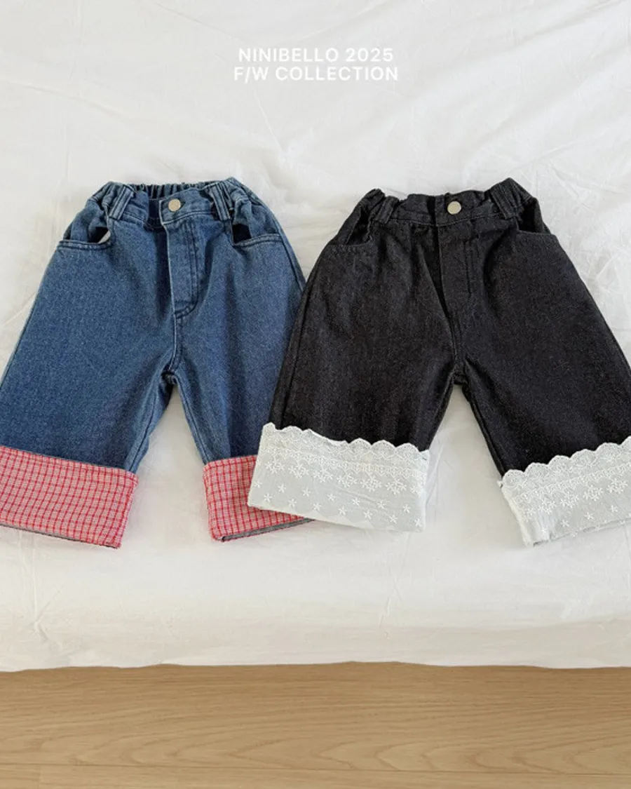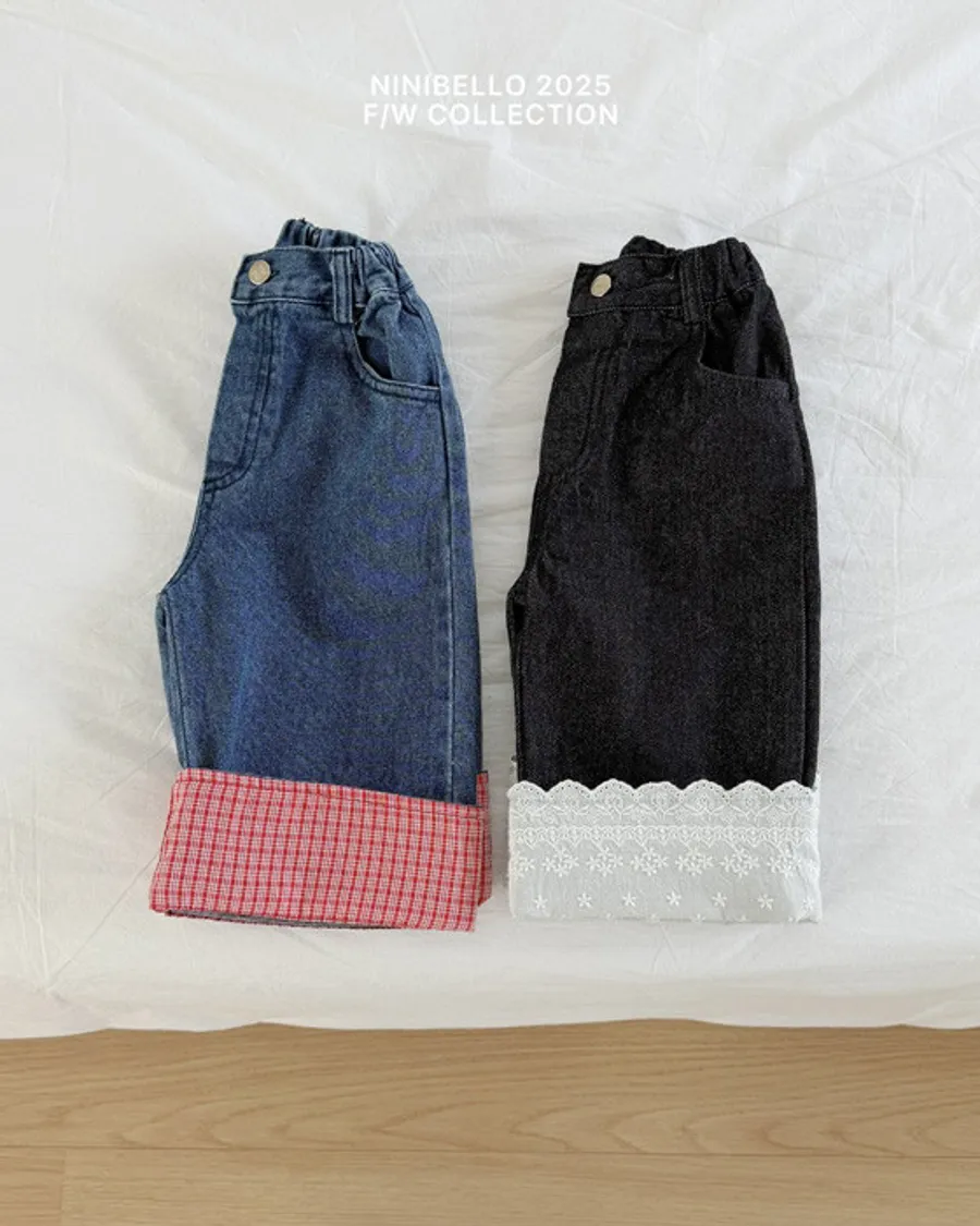 26S001-衣櫃裡沒有的蕾絲格紋打折褲