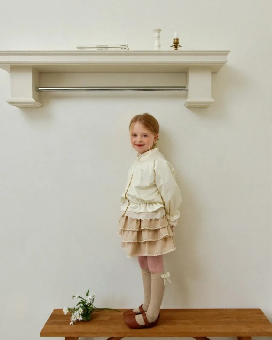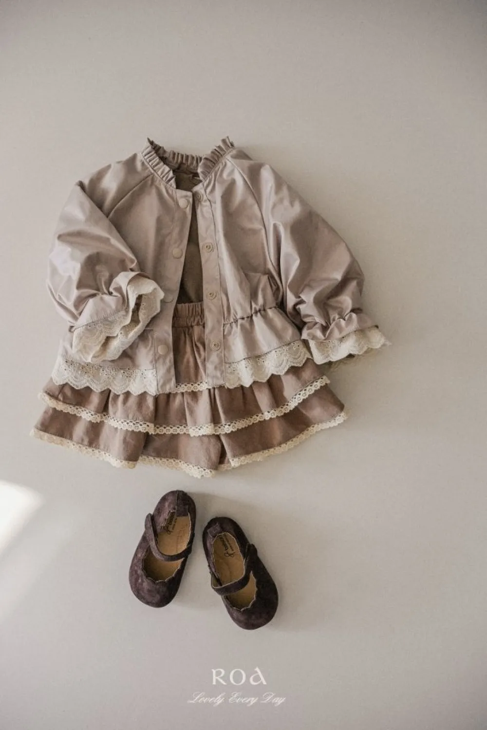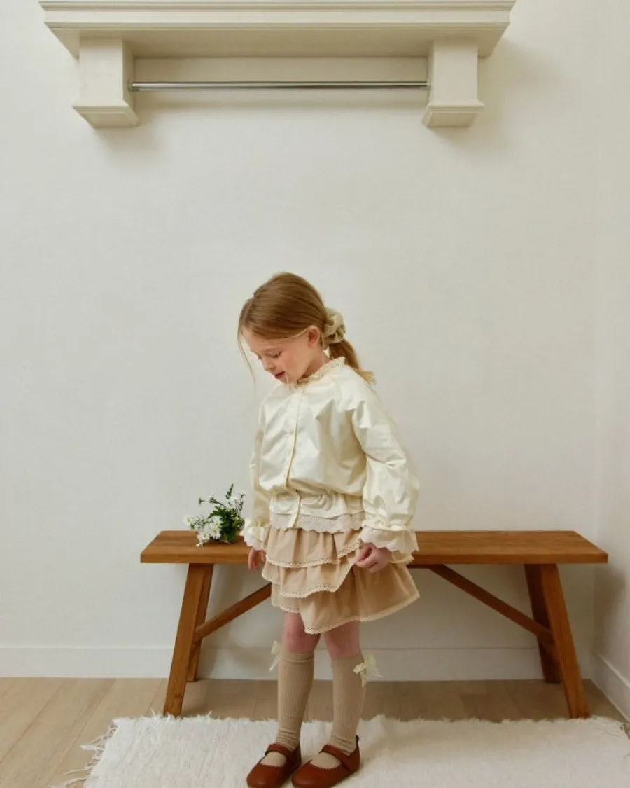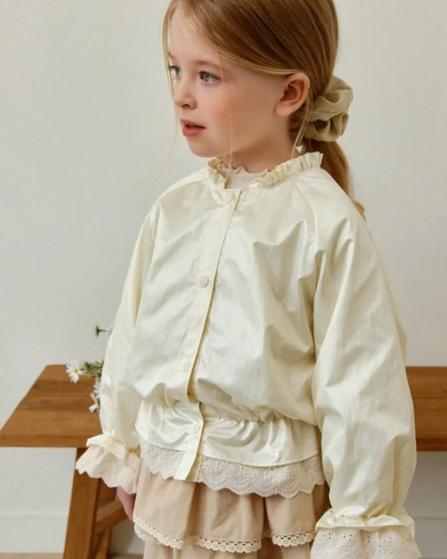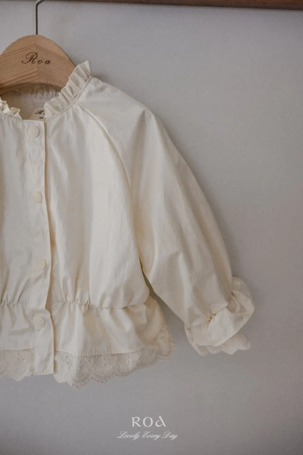 25S008-高質感貝殼襯衫袖口蕾絲排釦外套