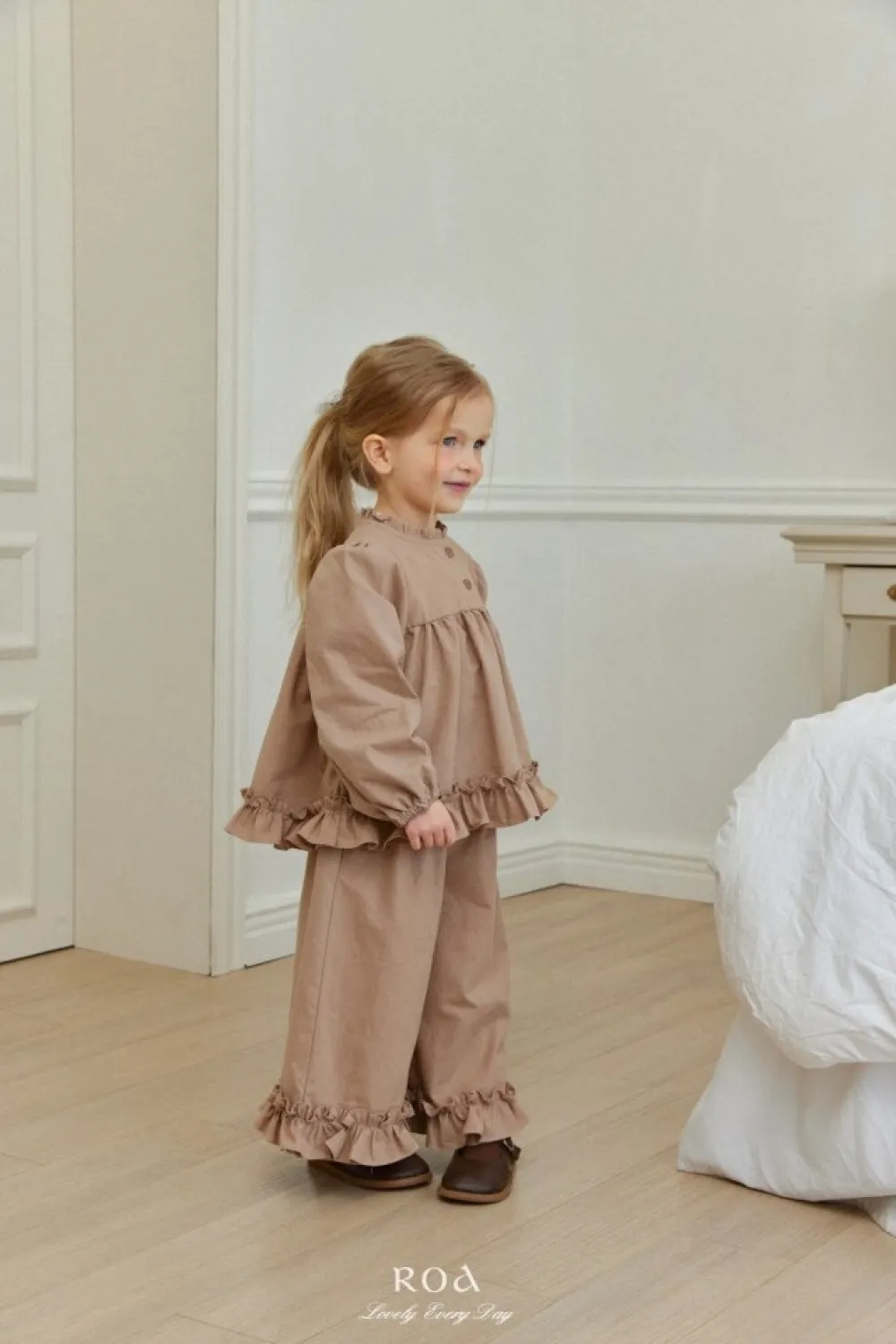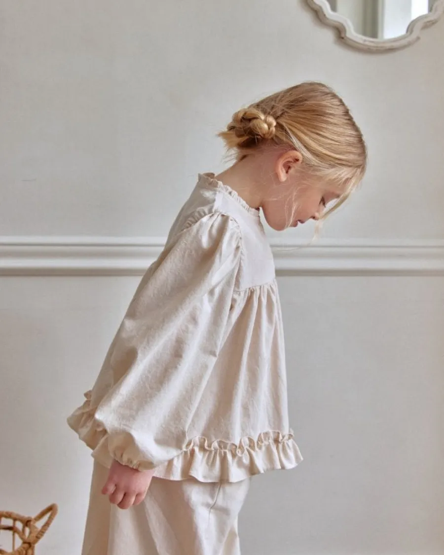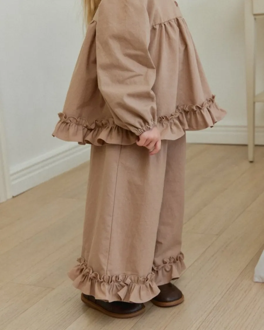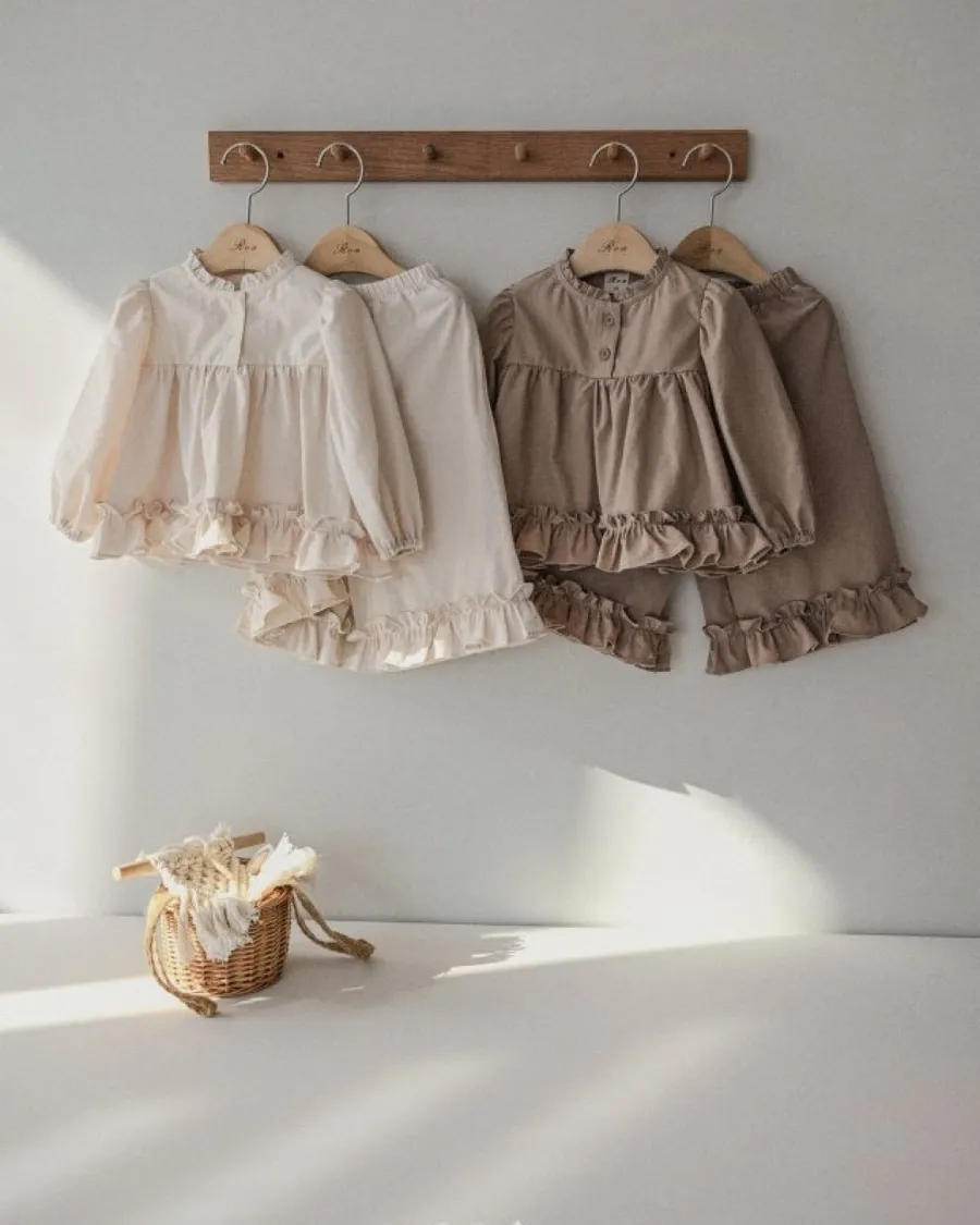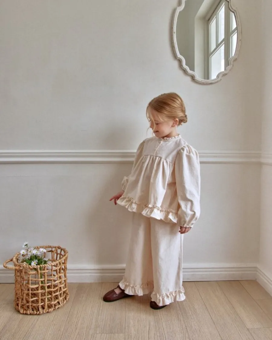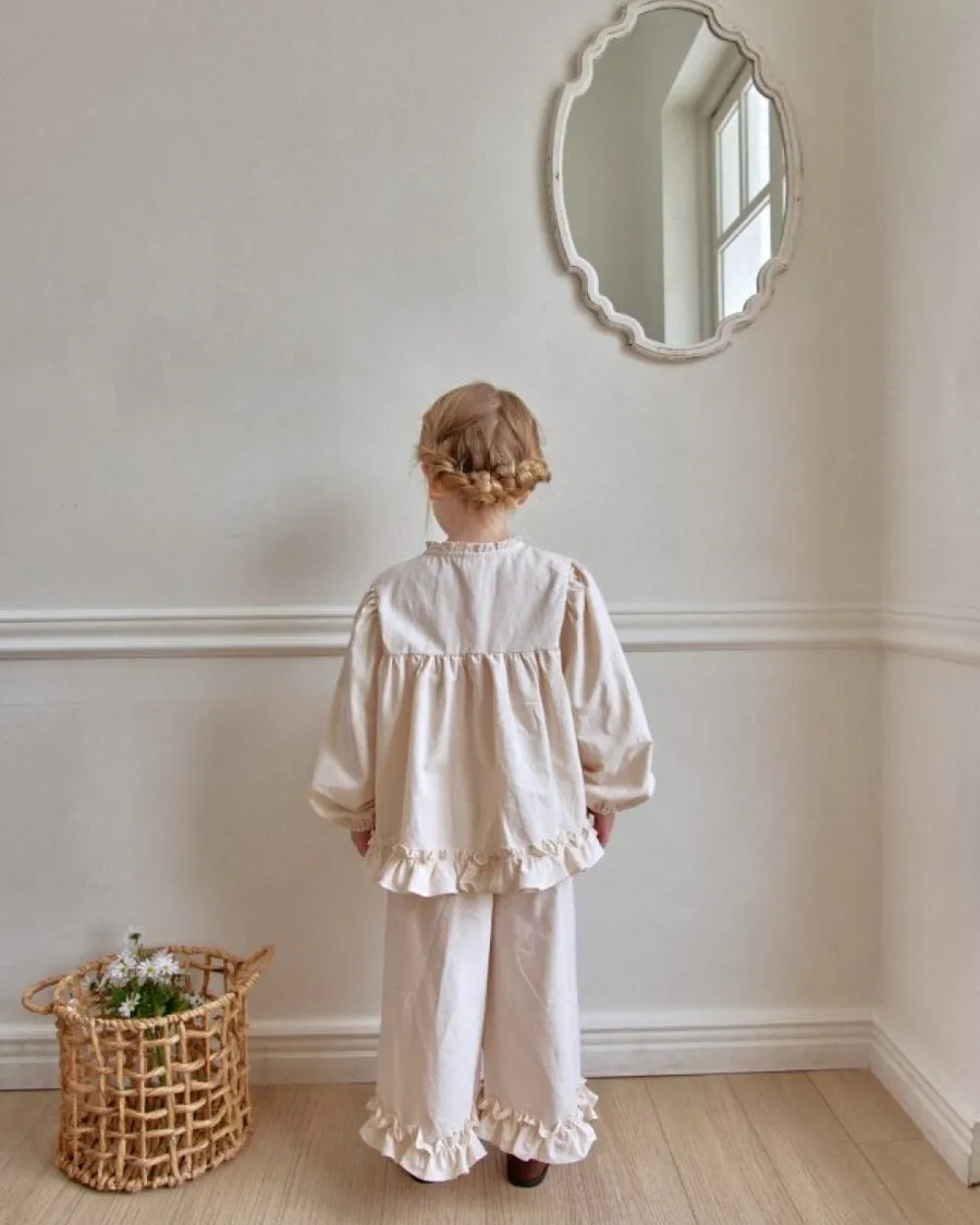 26S001-法式奶油擠花荷葉套裝(上衣+褲子)