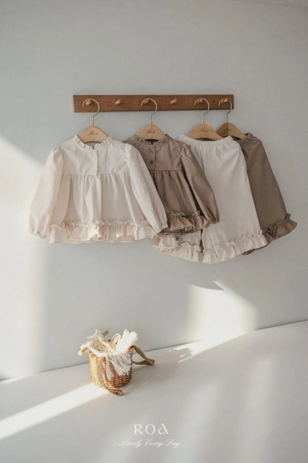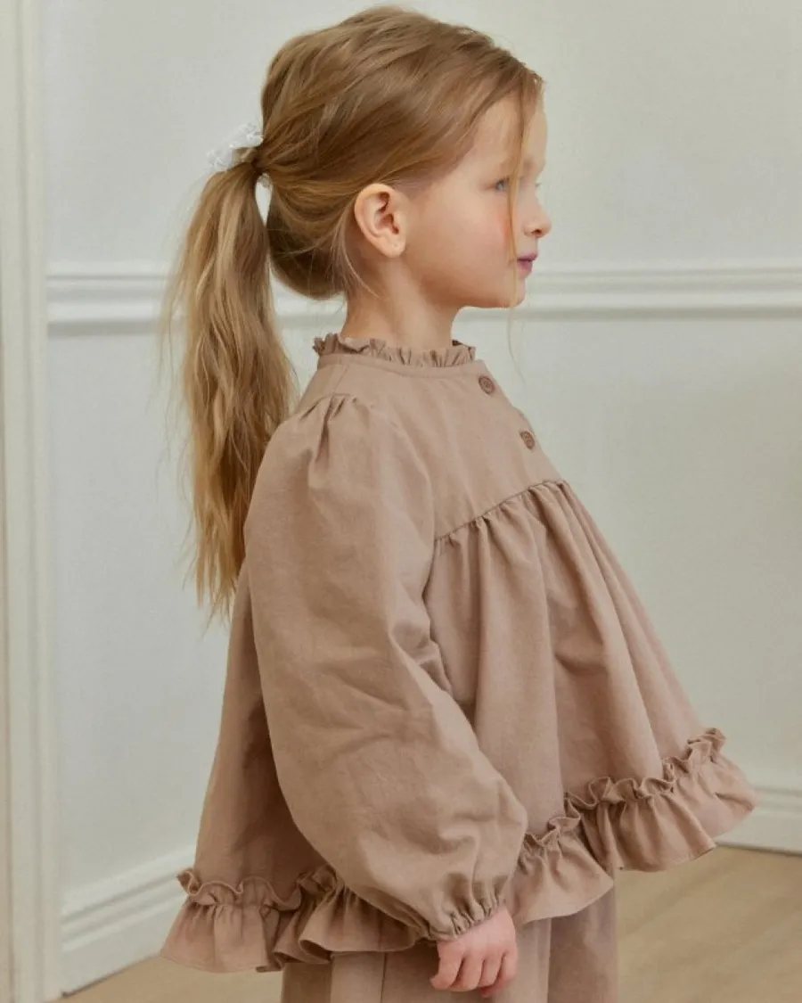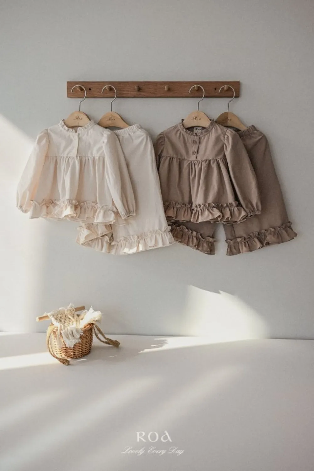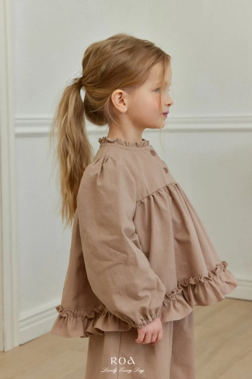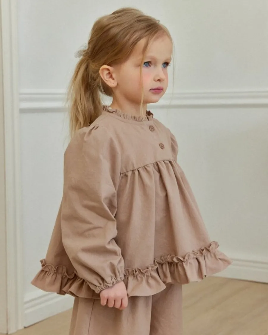 26S001-法式奶油擠花荷葉套裝(上衣+褲子)