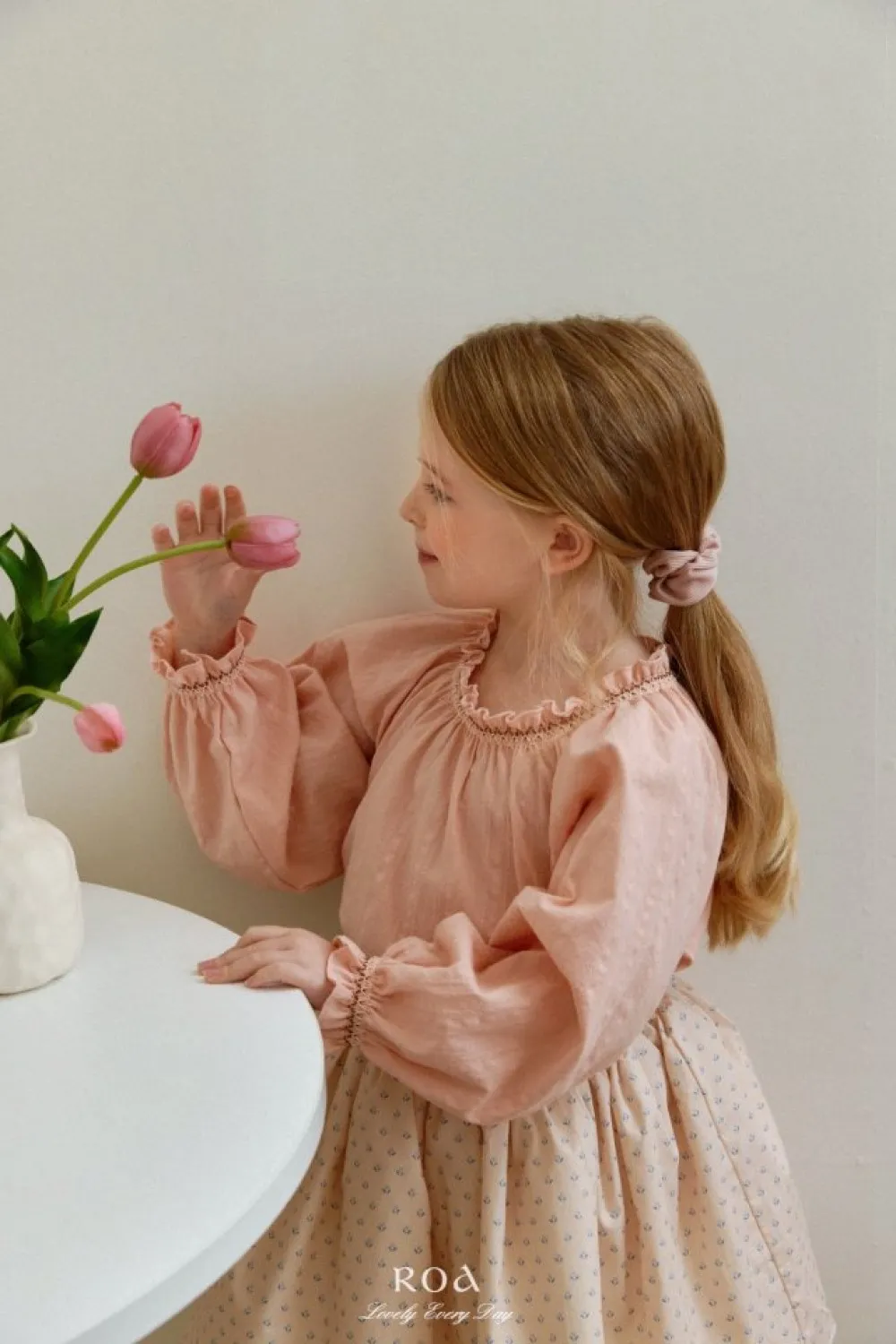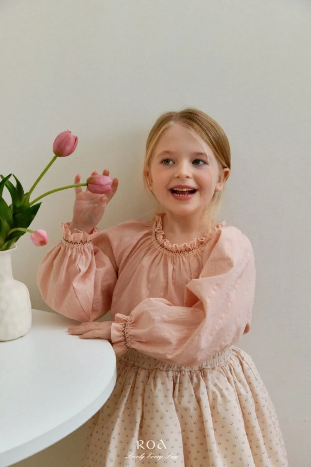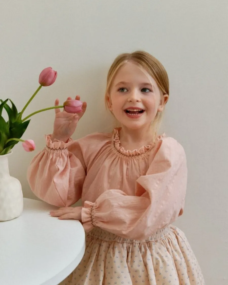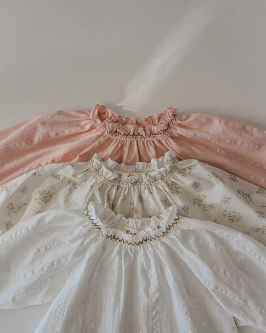 26S001-法式刺繡縮口上衣