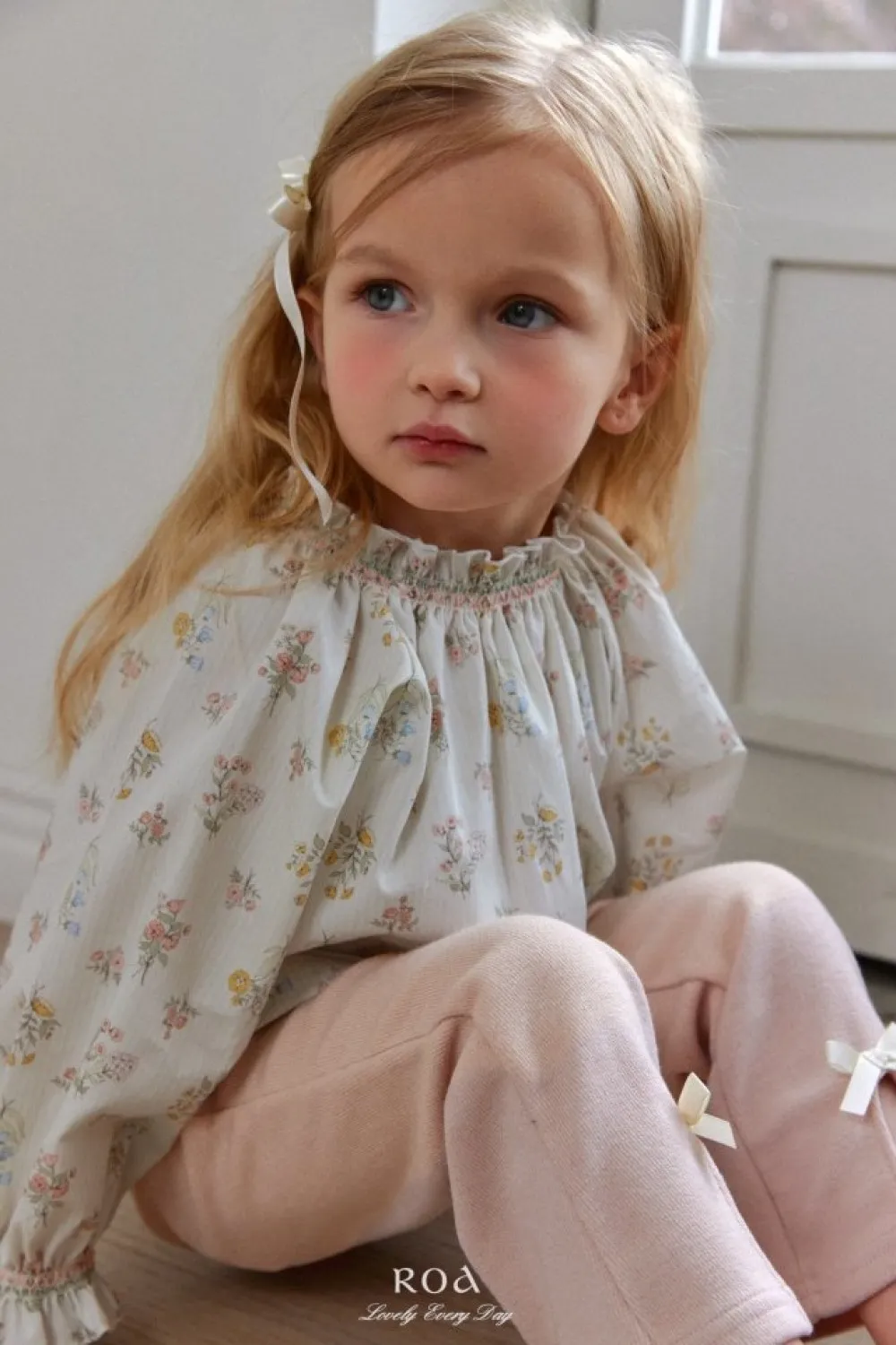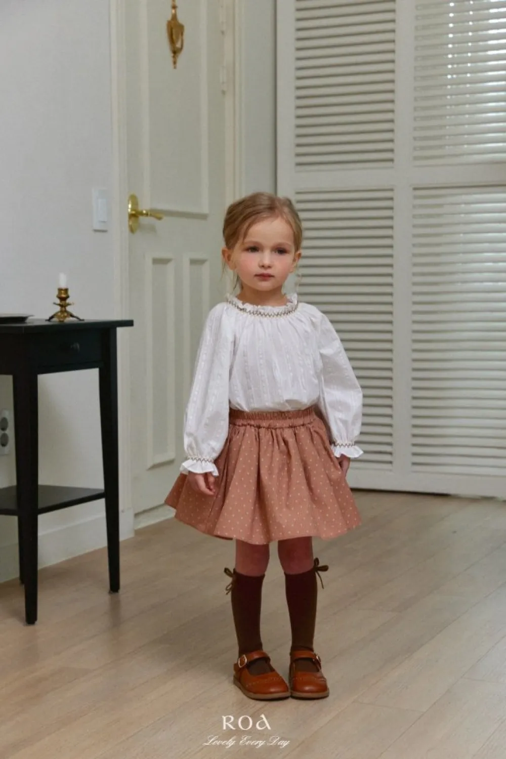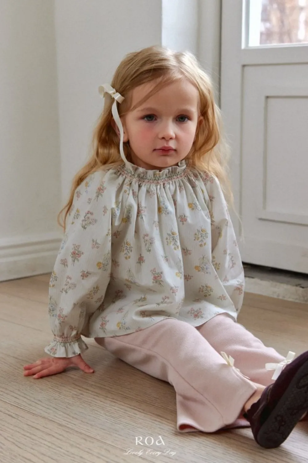 26S001-法式刺繡縮口上衣