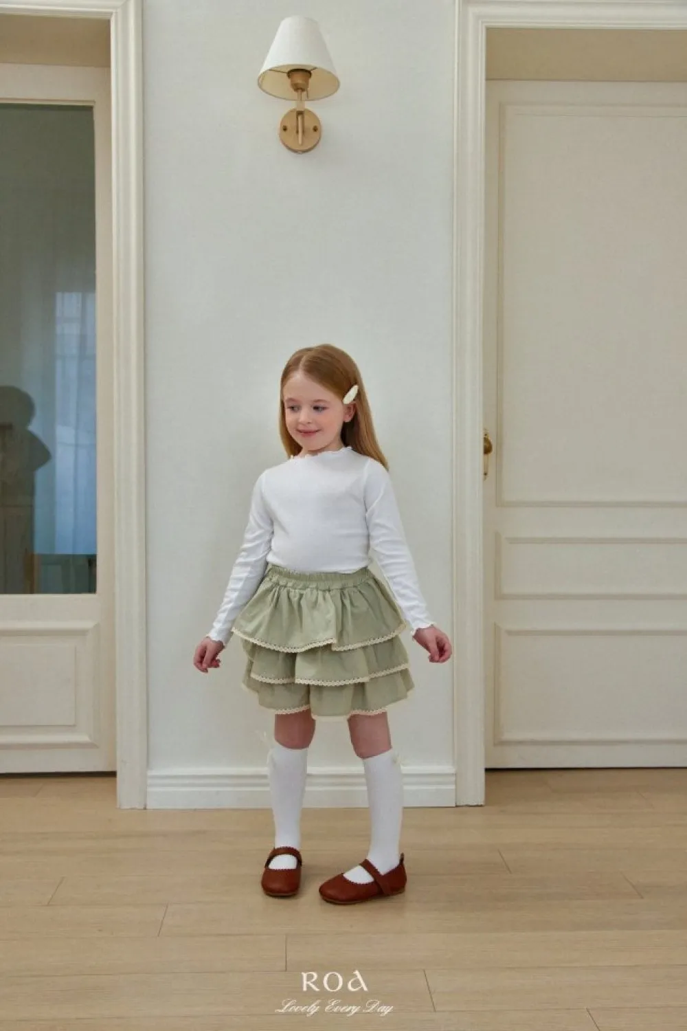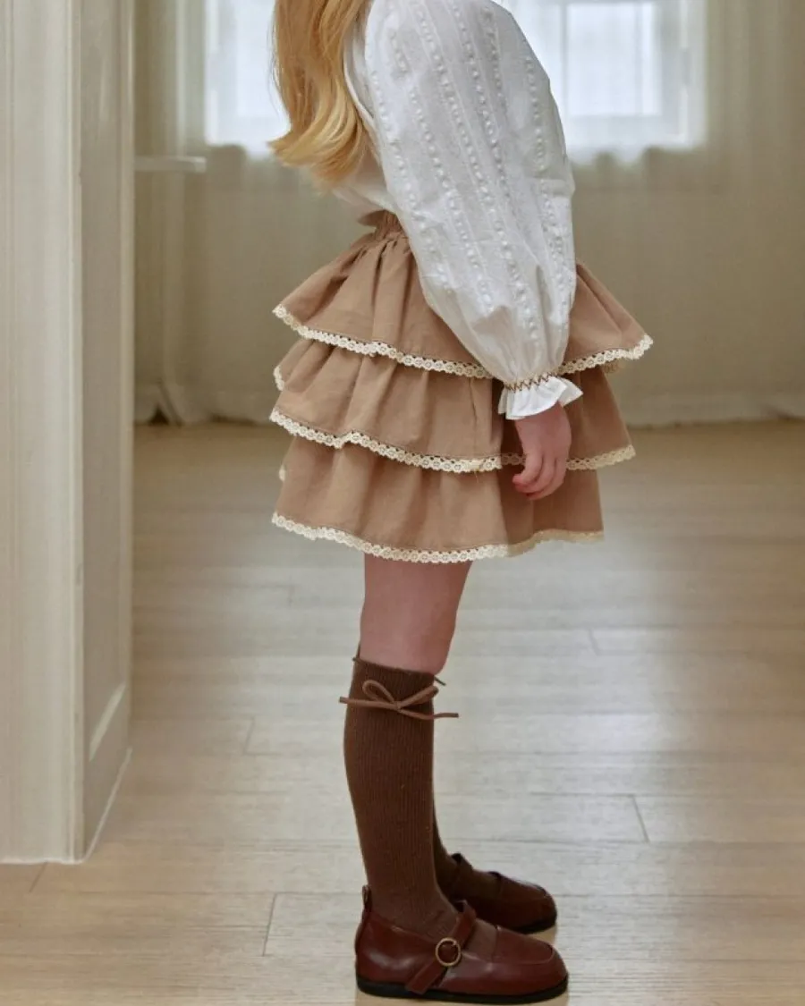 26S001-法式滾邊荷葉蛋糕褲裙