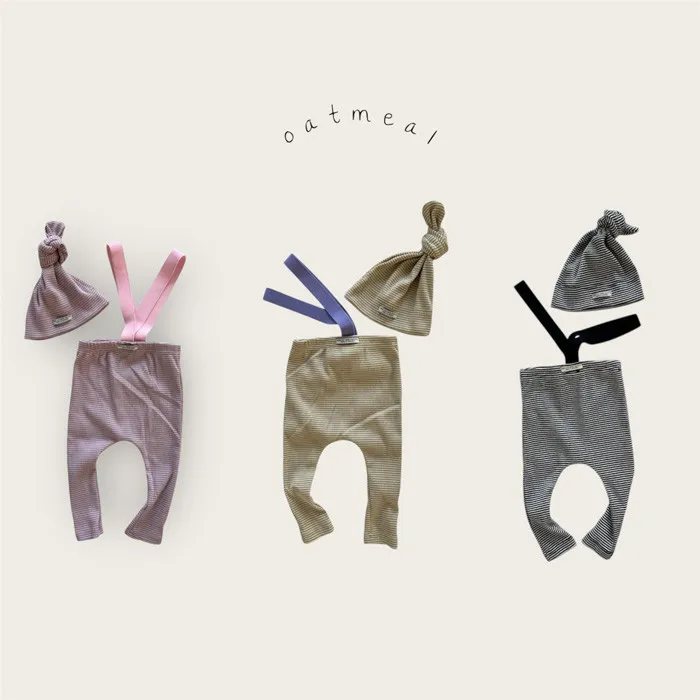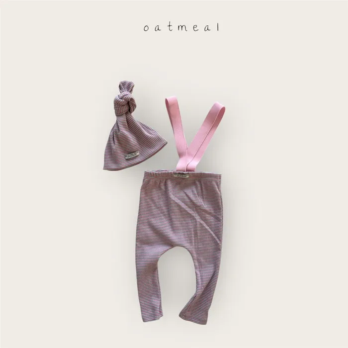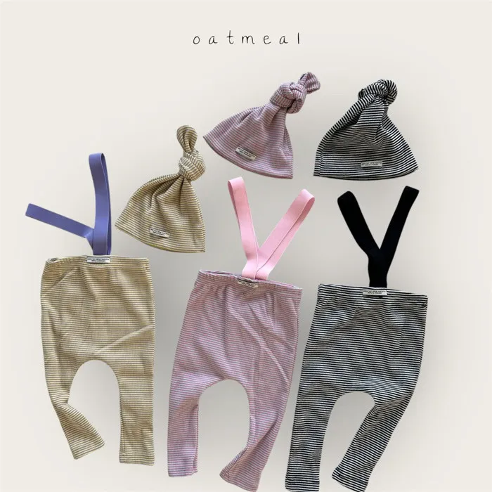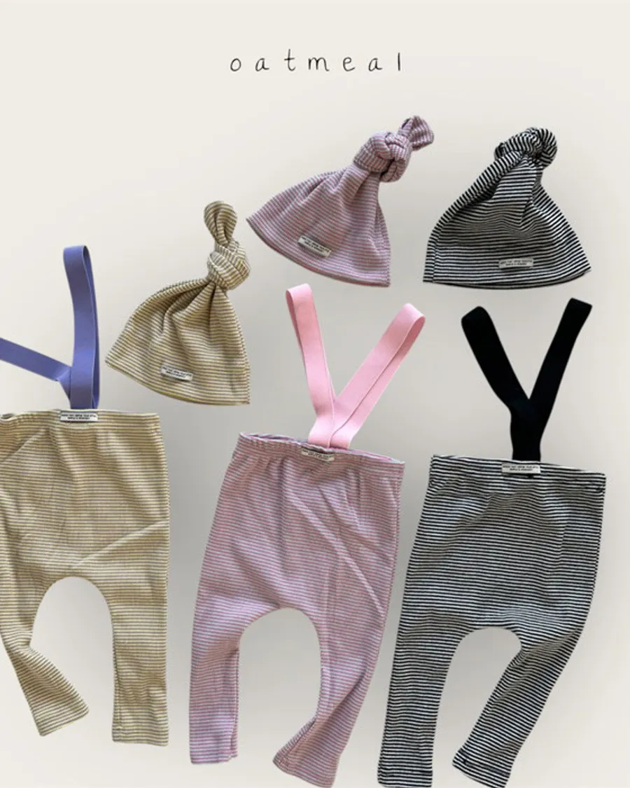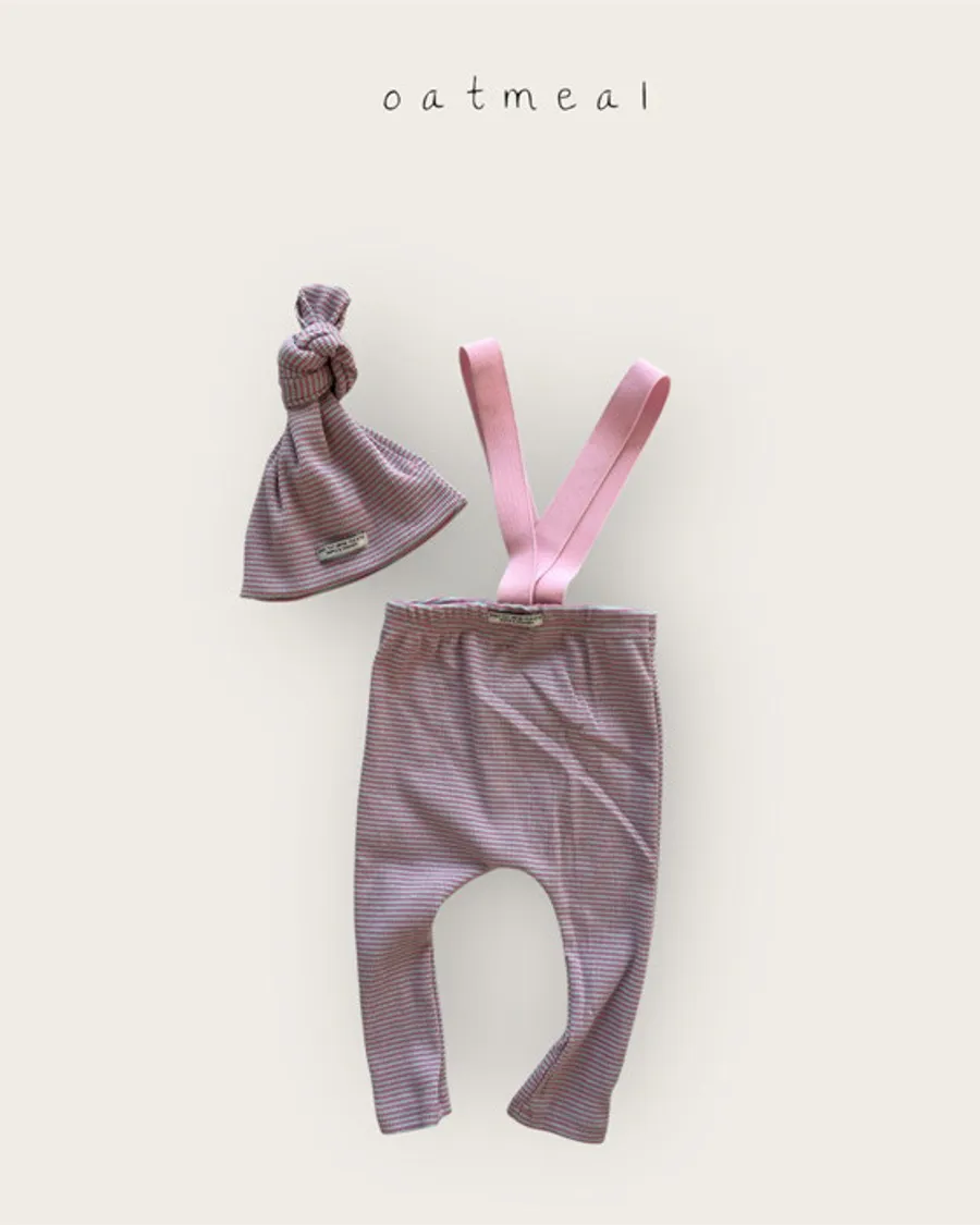 26S001-條紋吊帶褲+帽子Set