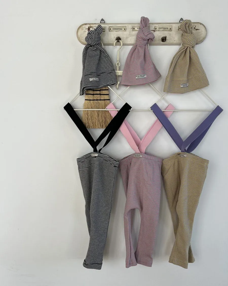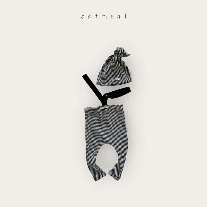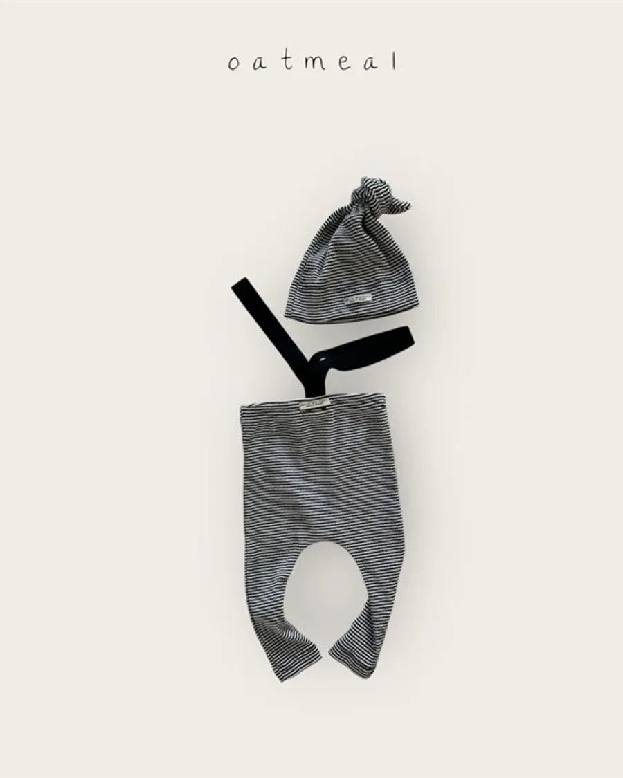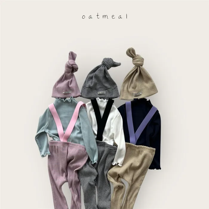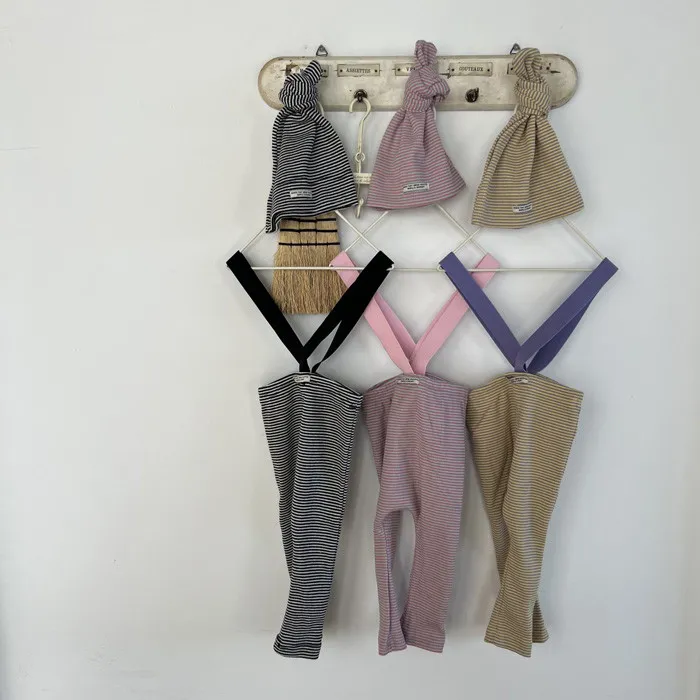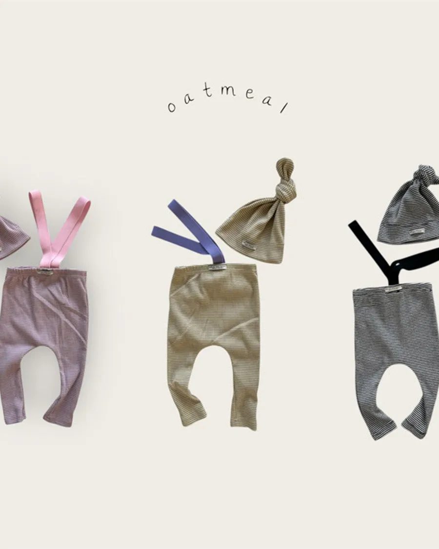 26S001-條紋吊帶褲+帽子Set