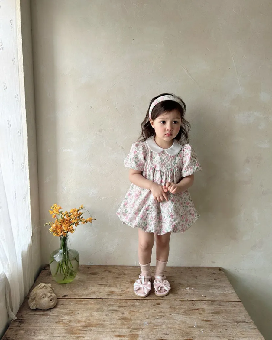 26S001- 玫瑰花園娃娃領洋裝