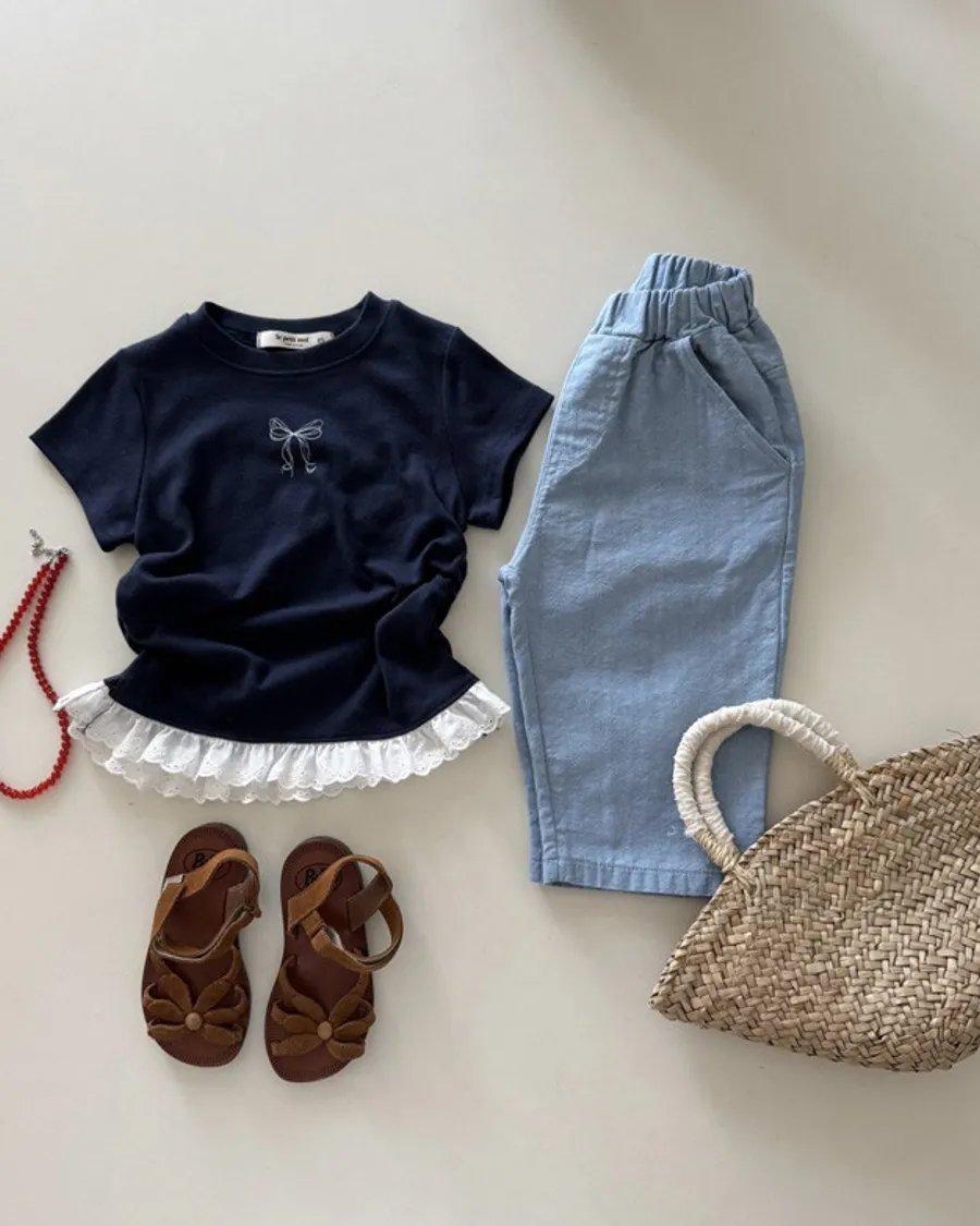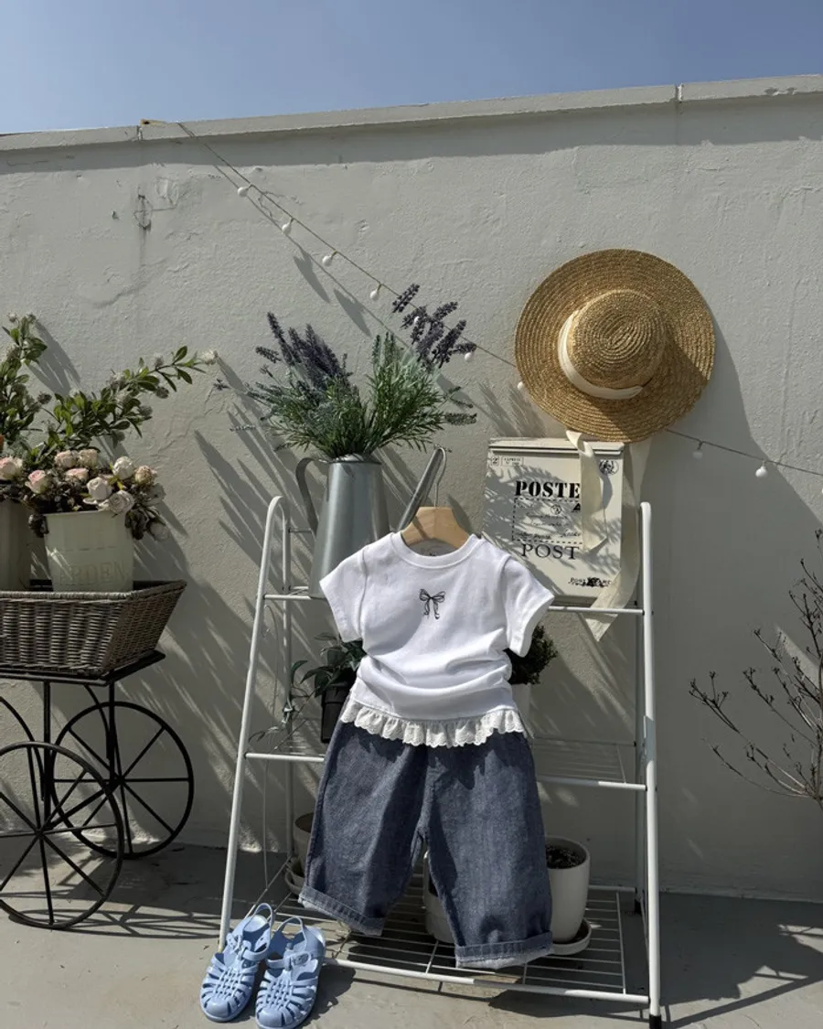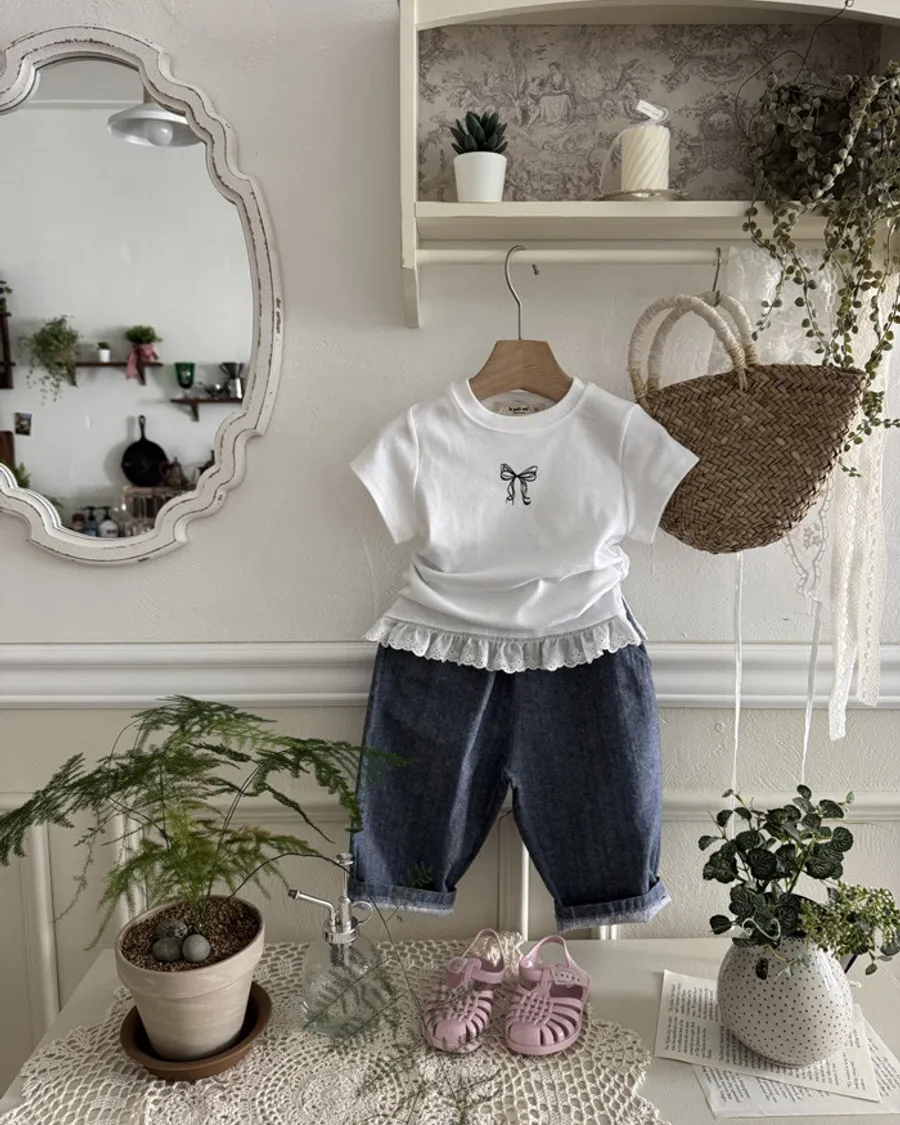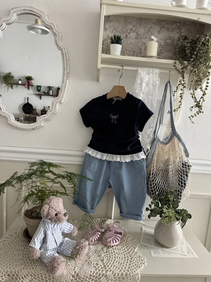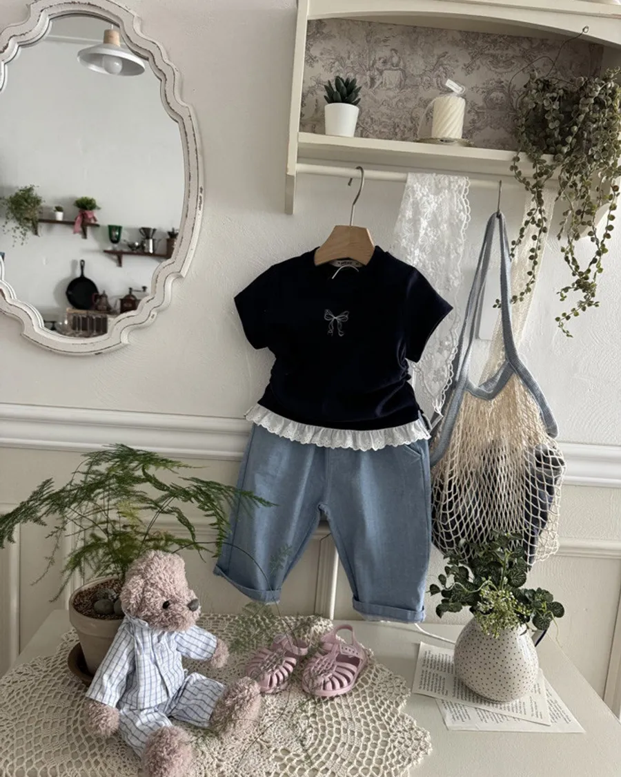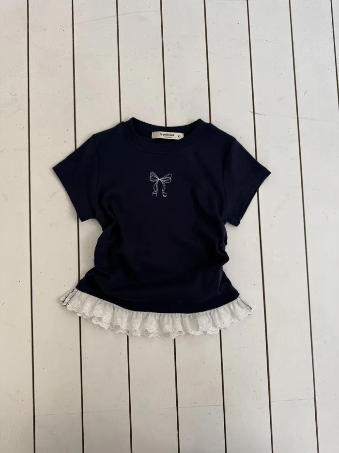 26S001- 蝴蝶縮腰下擺蕾絲上衣