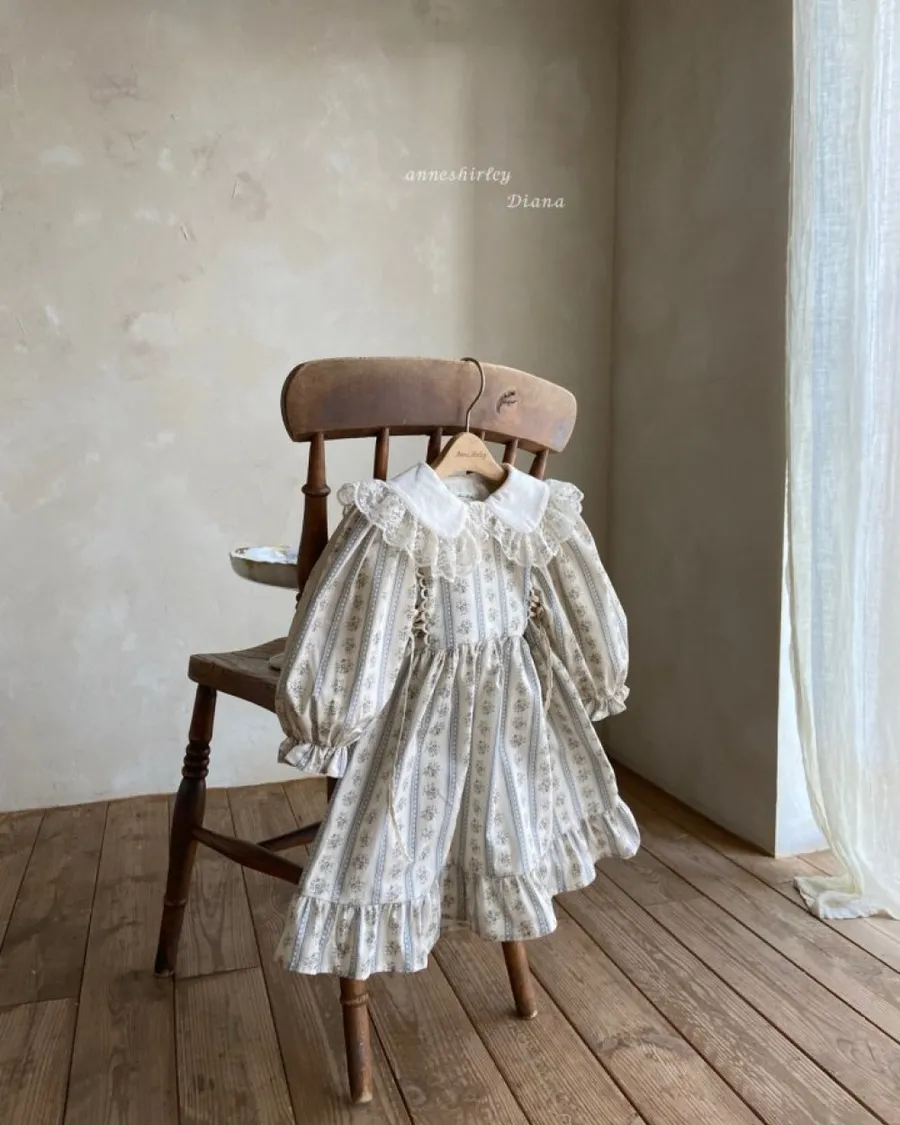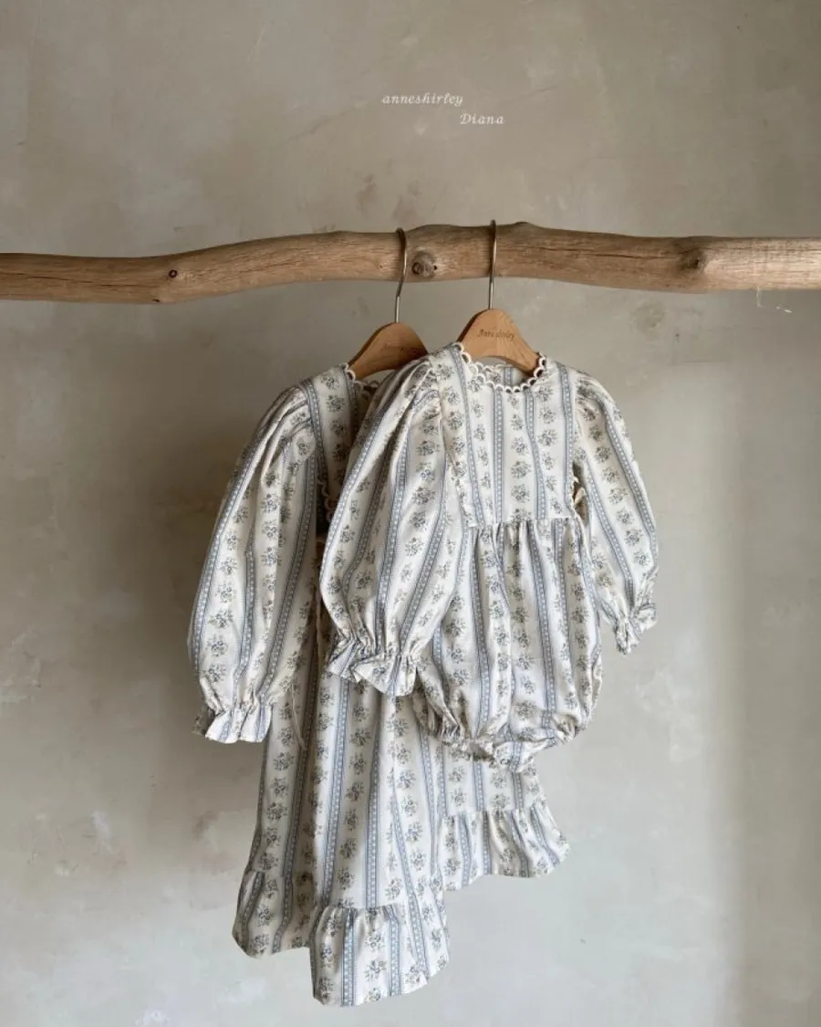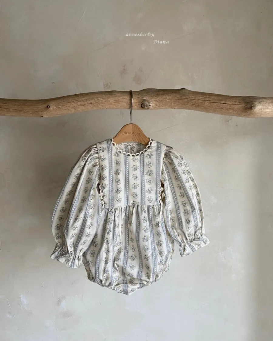 25S001-復古小花蕾絲滾邊包屁衣/洋裝
