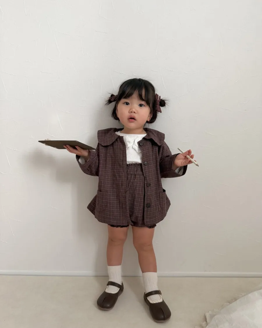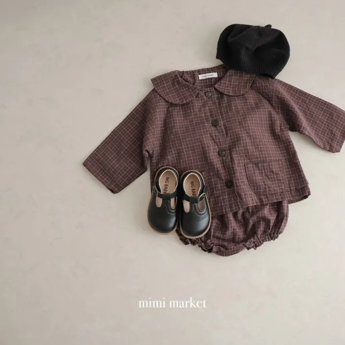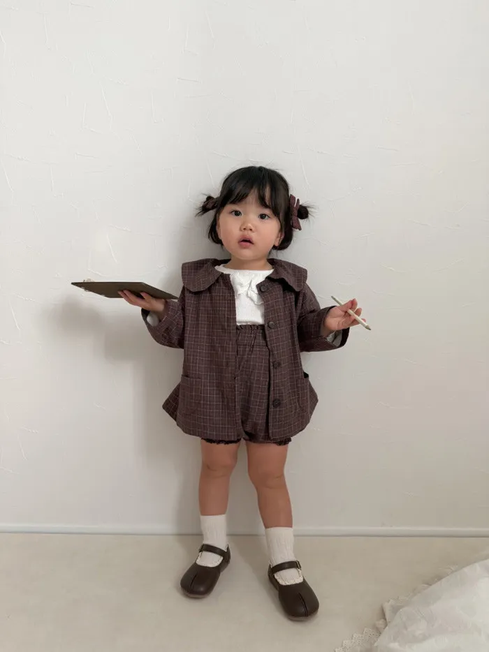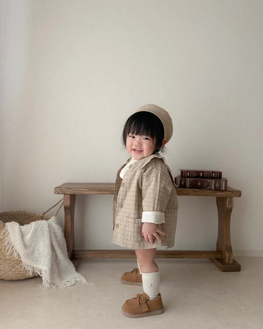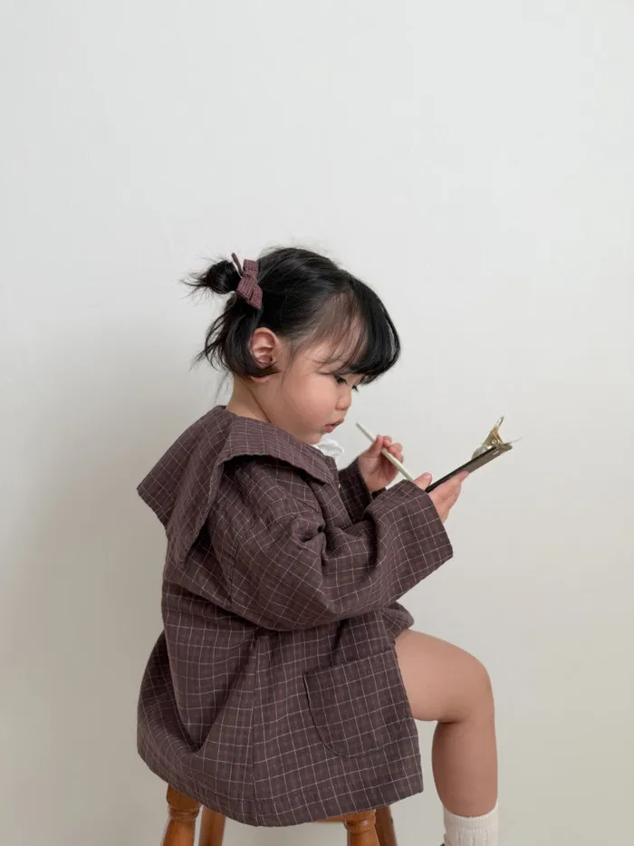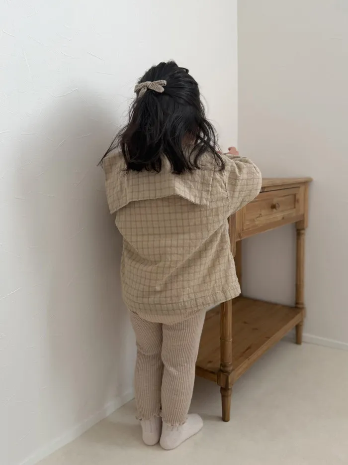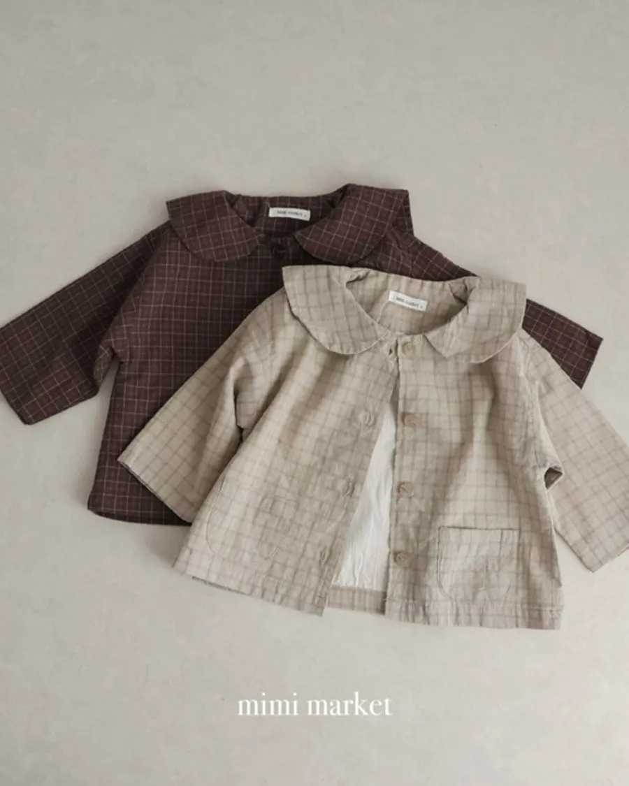 26S001-日系格紋小圓領罩衫