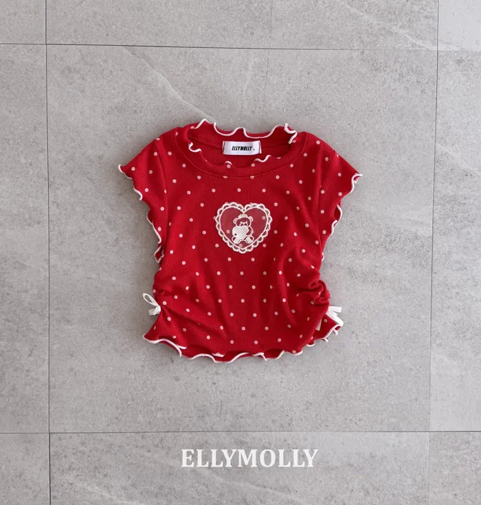 26S002- 波點縮腰蝴蝶綁帶上衣