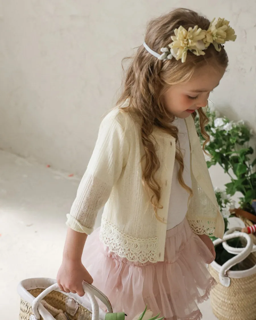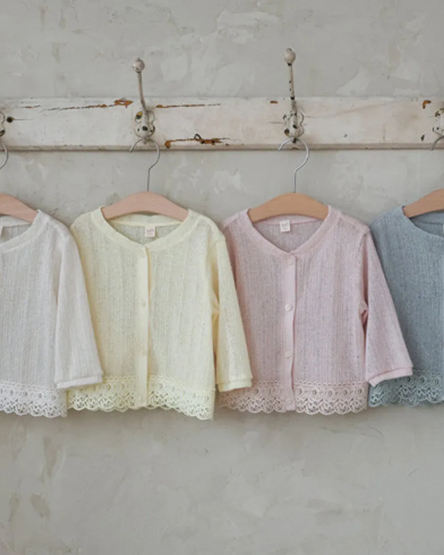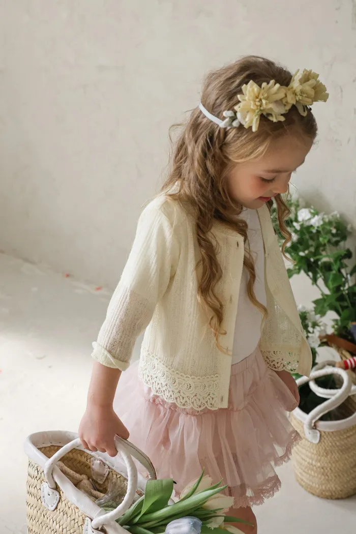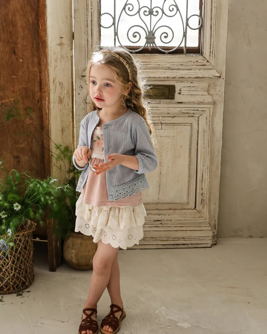 26S001- 下擺蕾絲開襟外套