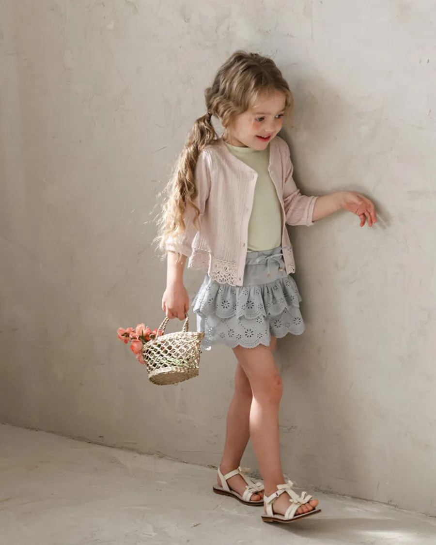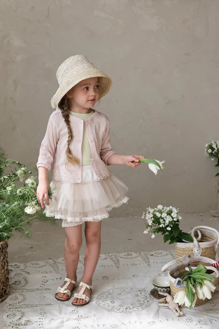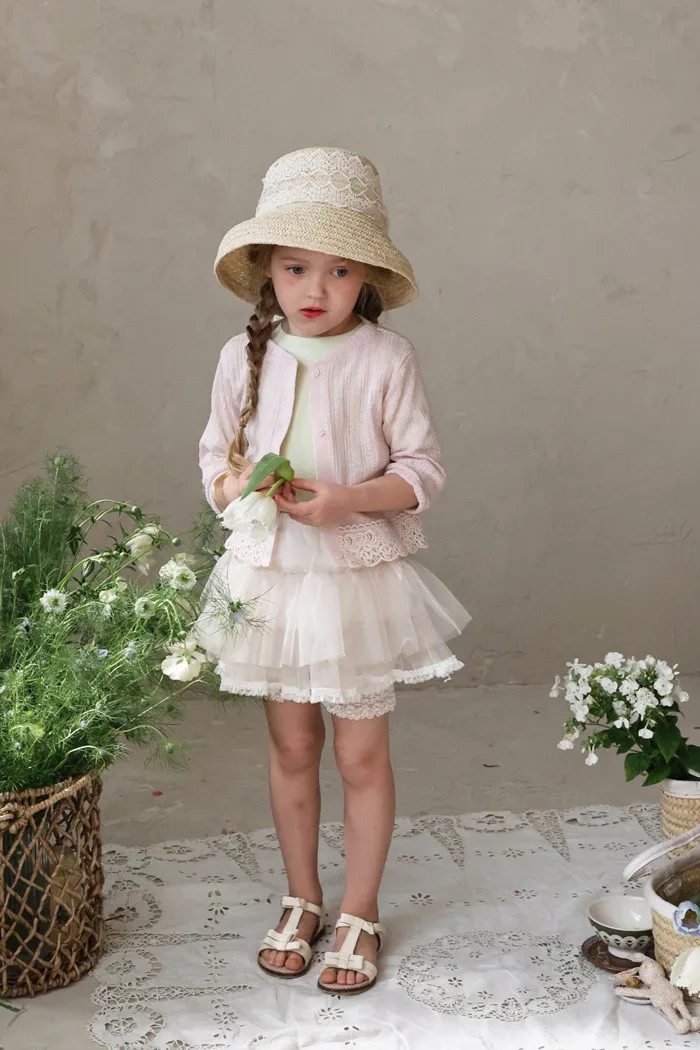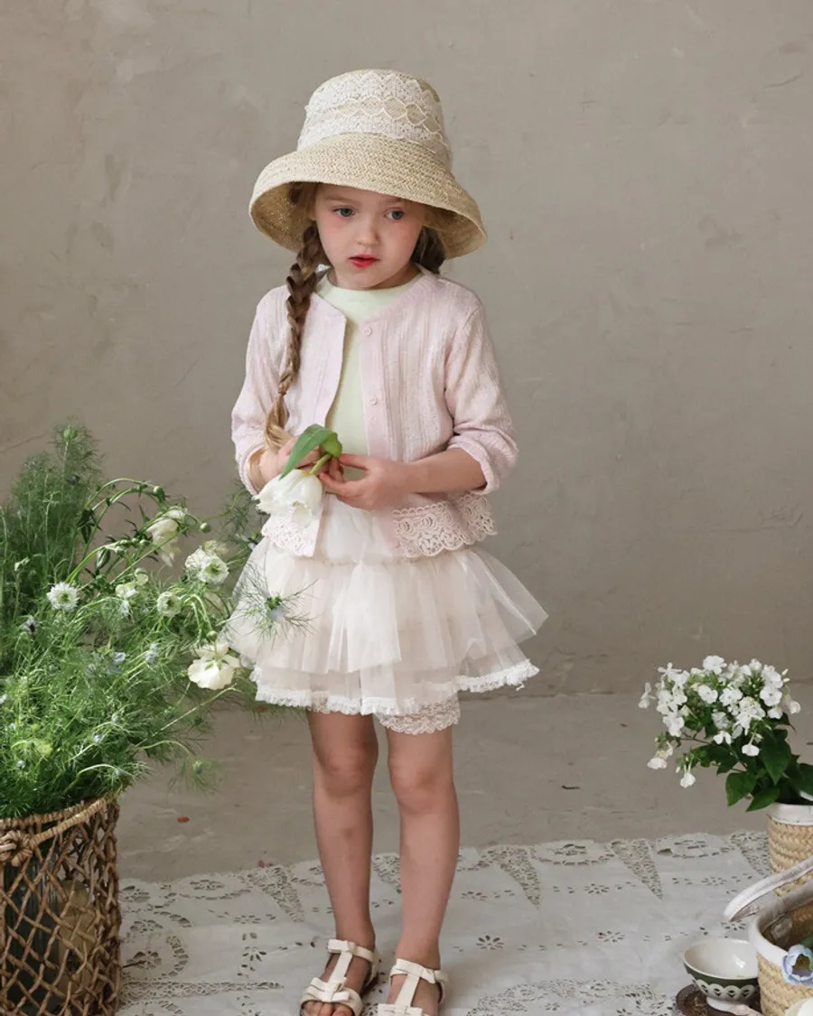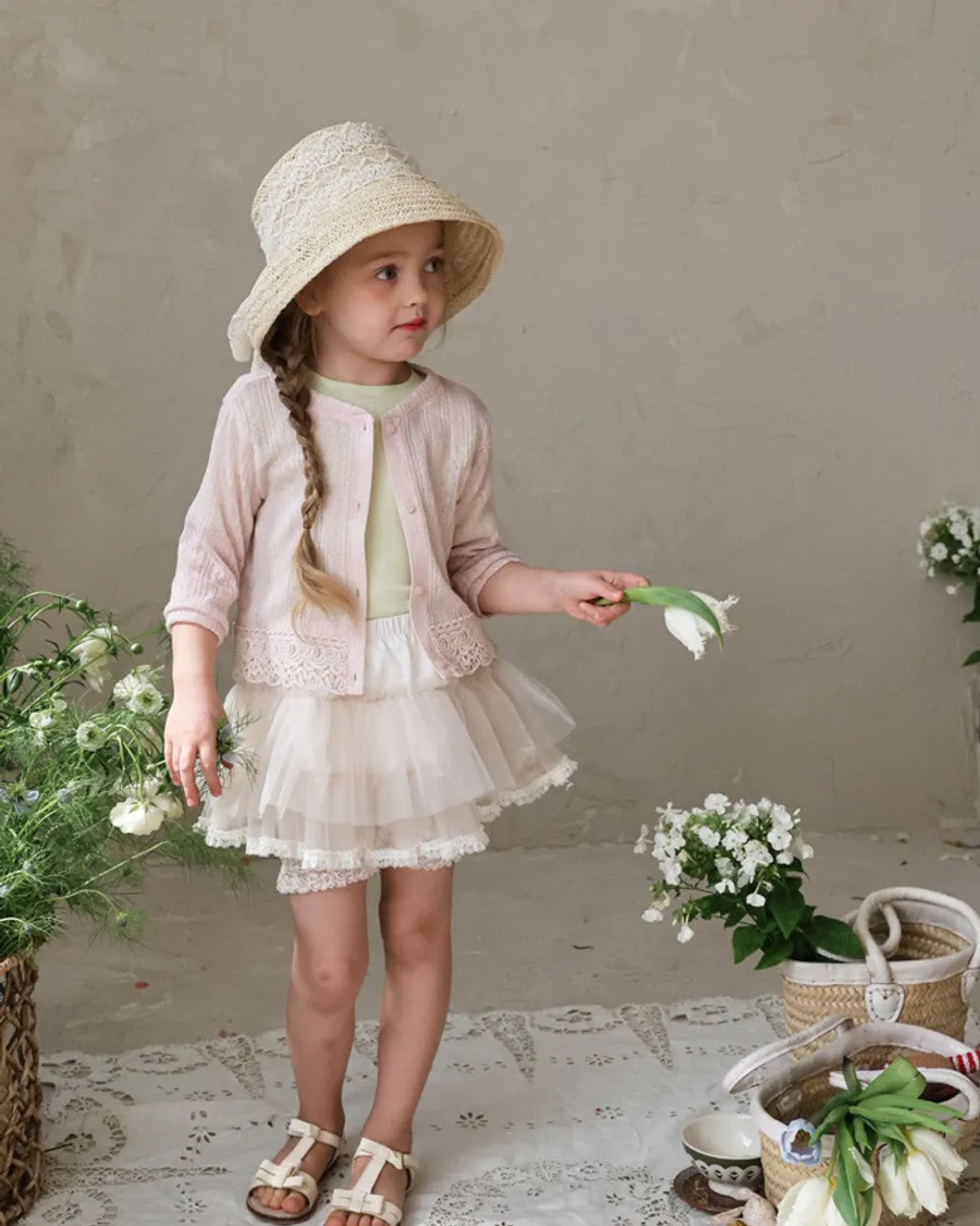 26S001- 下擺蕾絲開襟外套