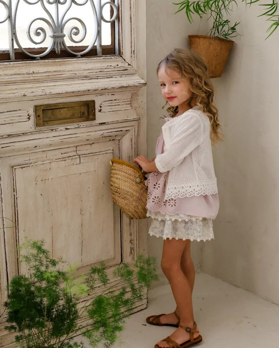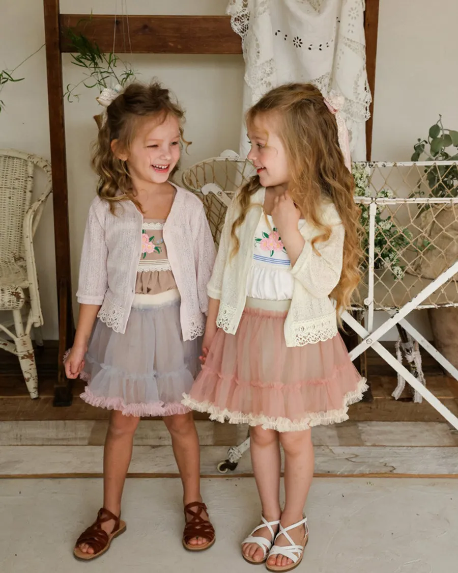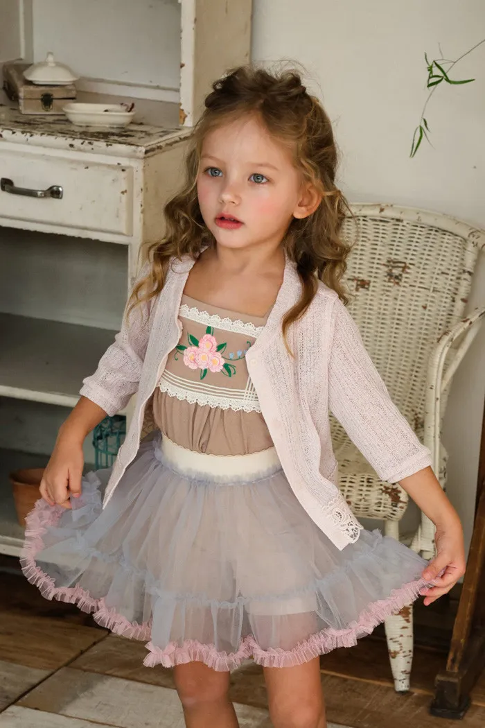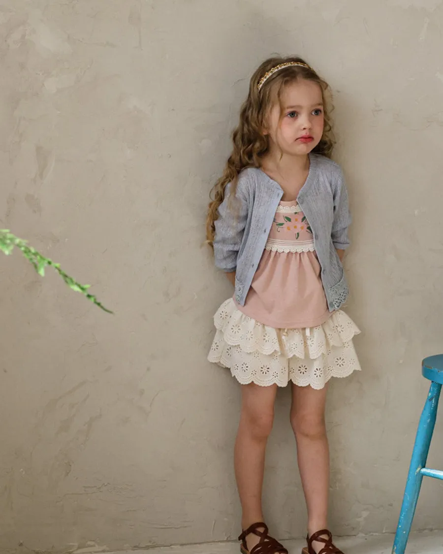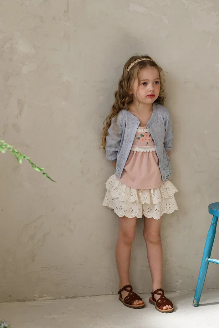 26S001- 下擺蕾絲開襟外套