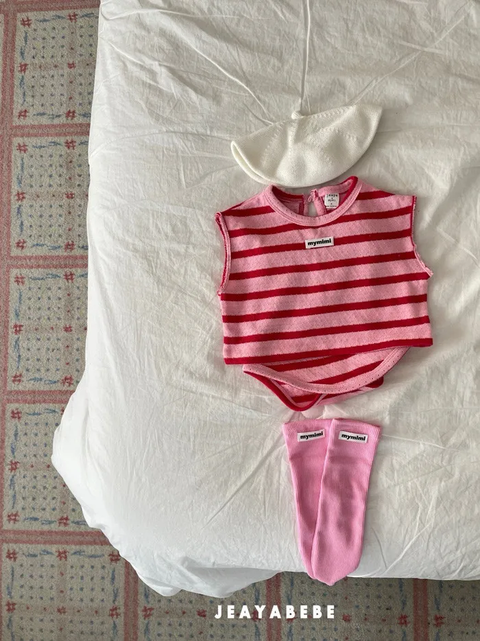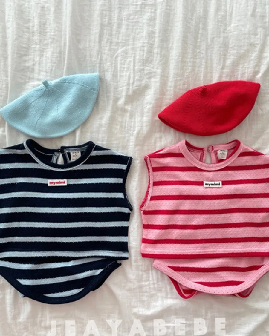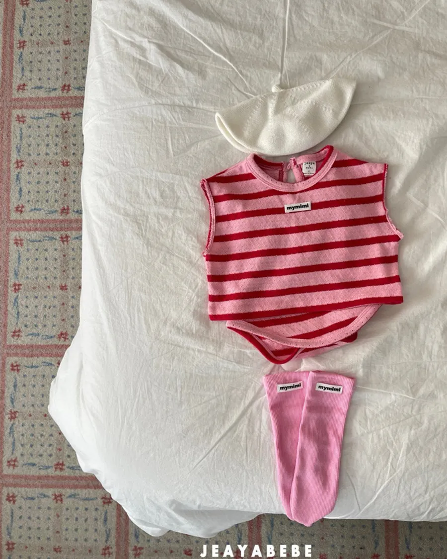 26S001- 條紋撞色背心包屁衣