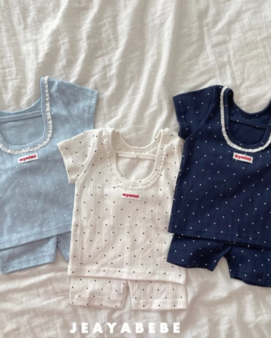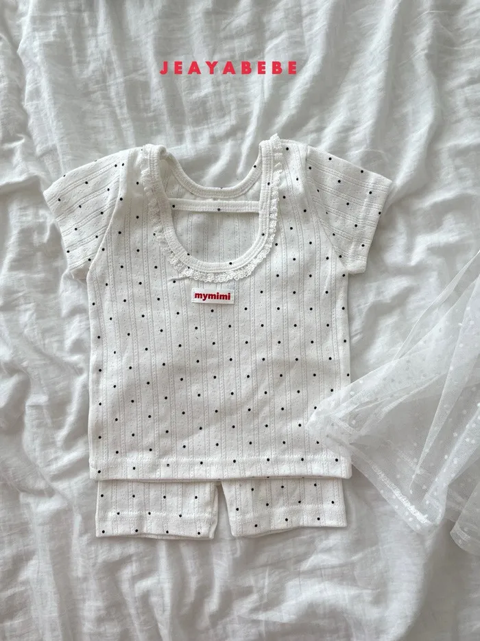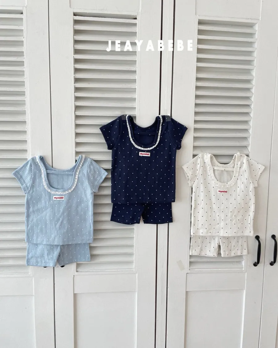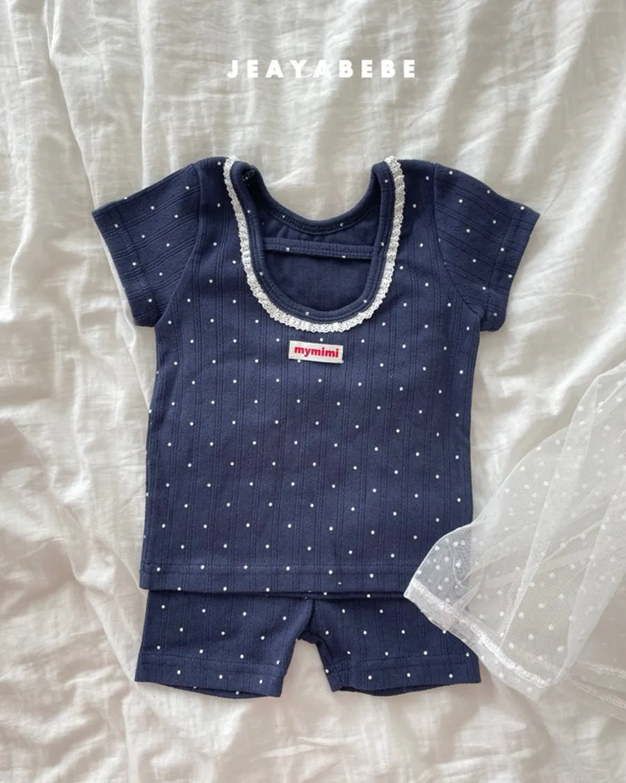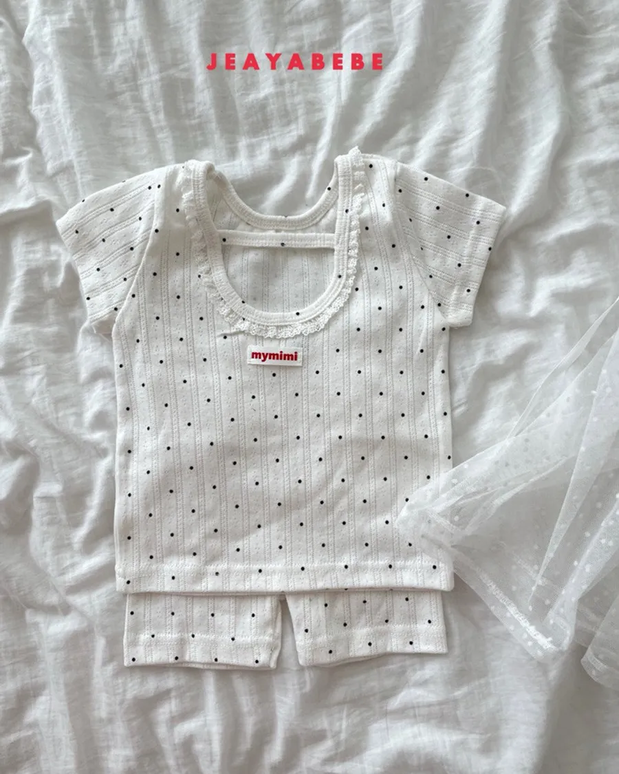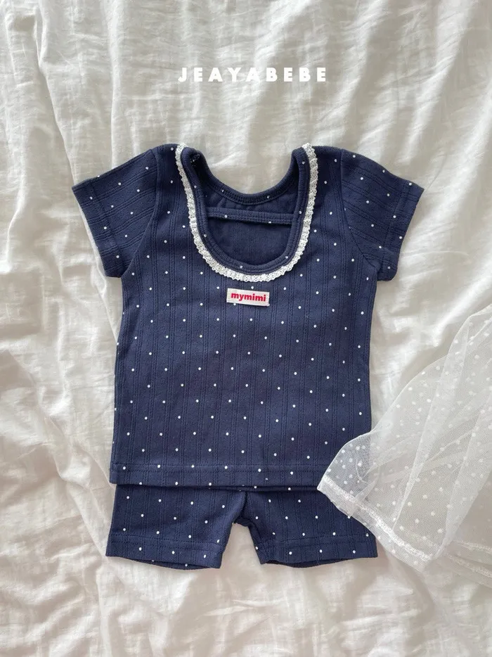 26S001- 抗條蕾絲滾邊點點套裝