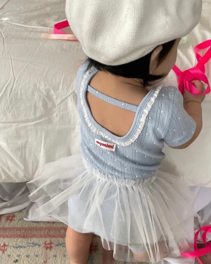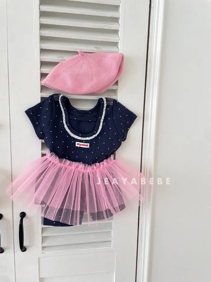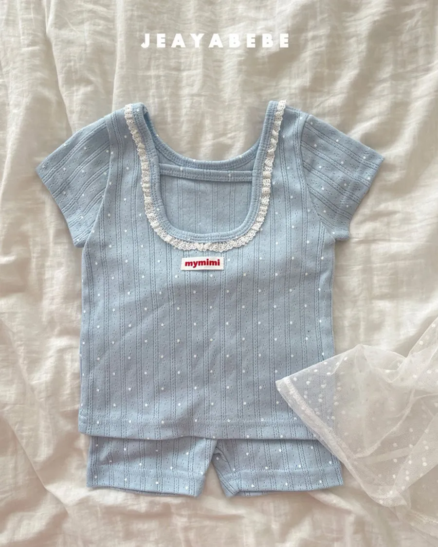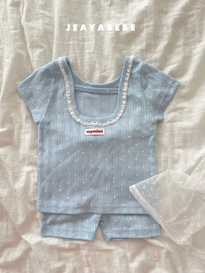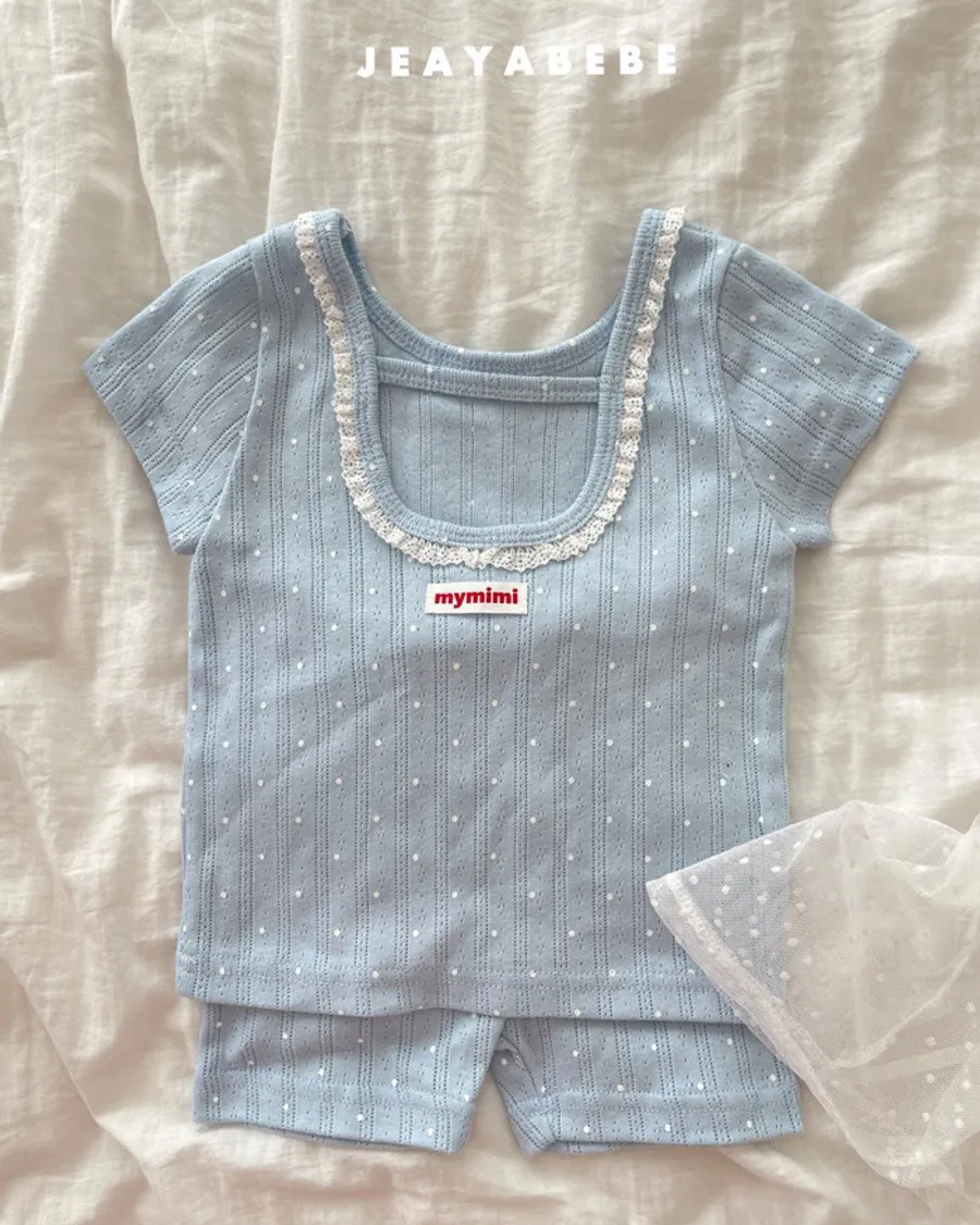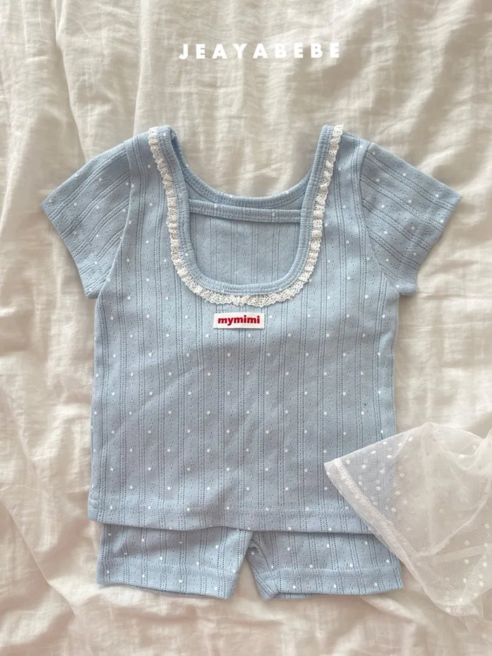 26S001- 抗條蕾絲滾邊點點套裝