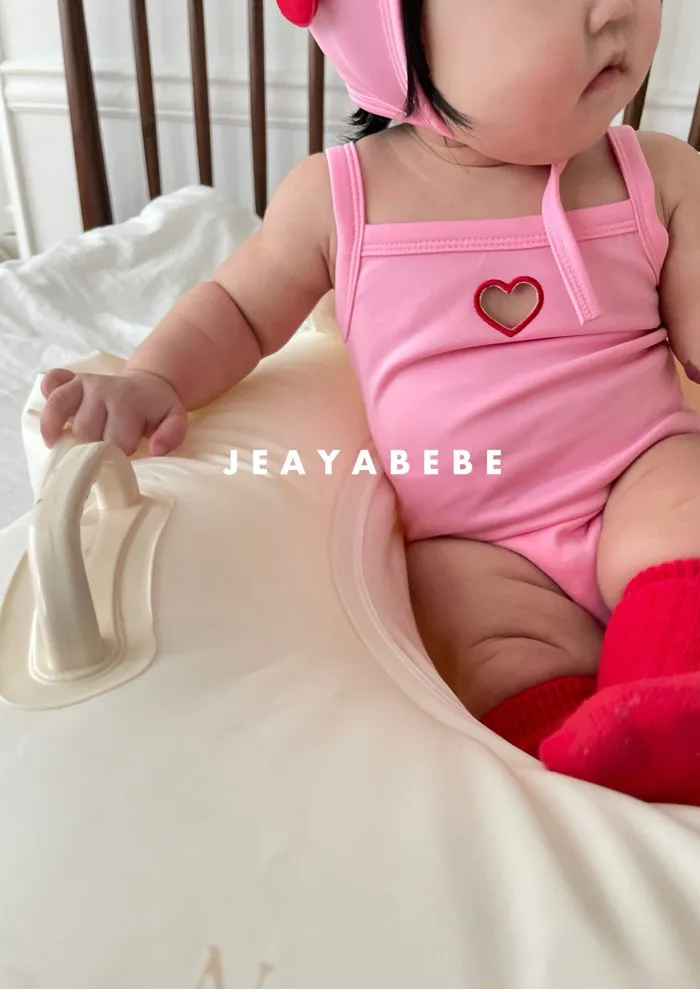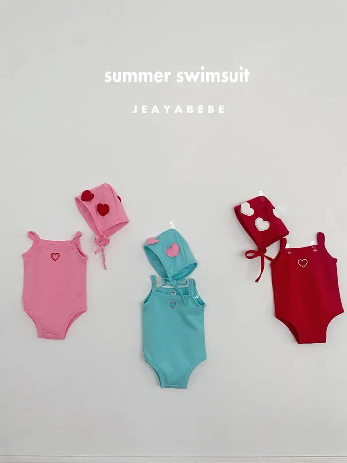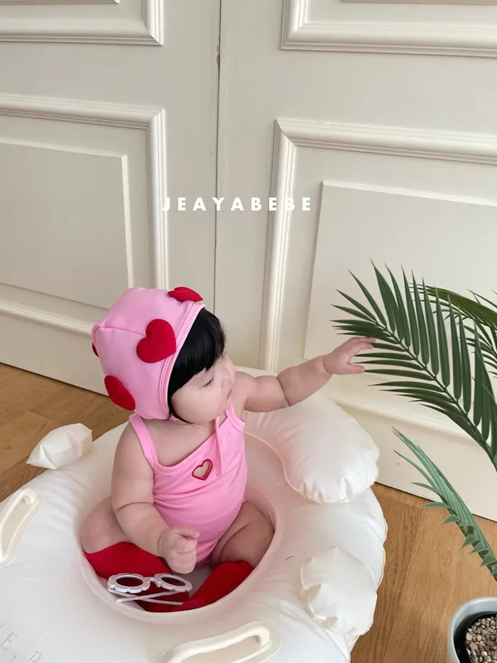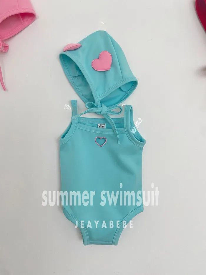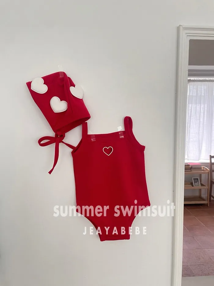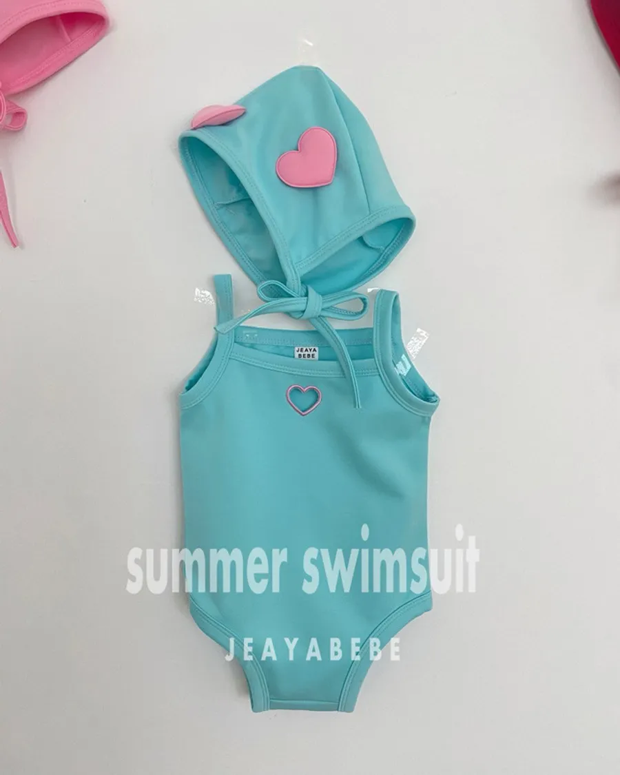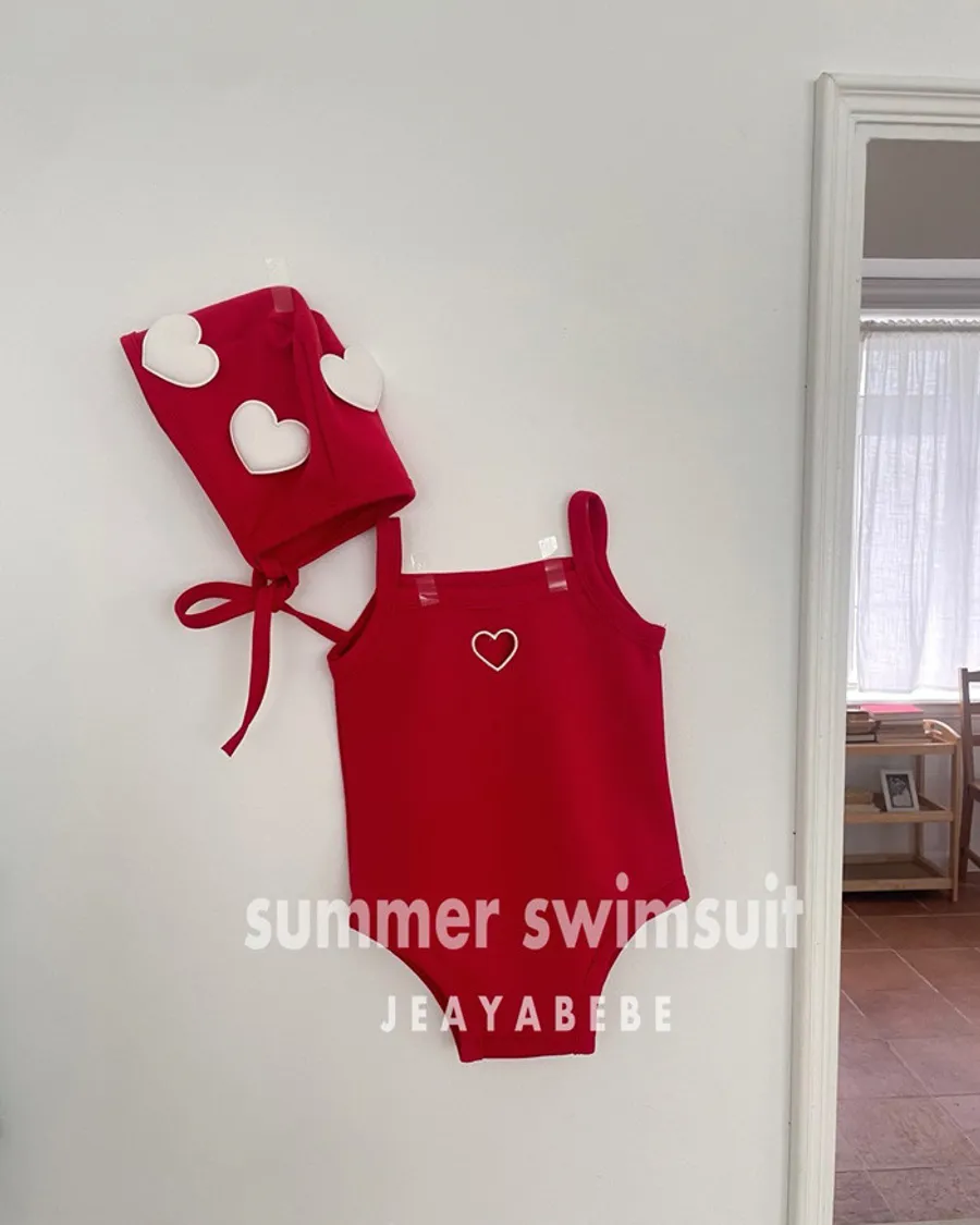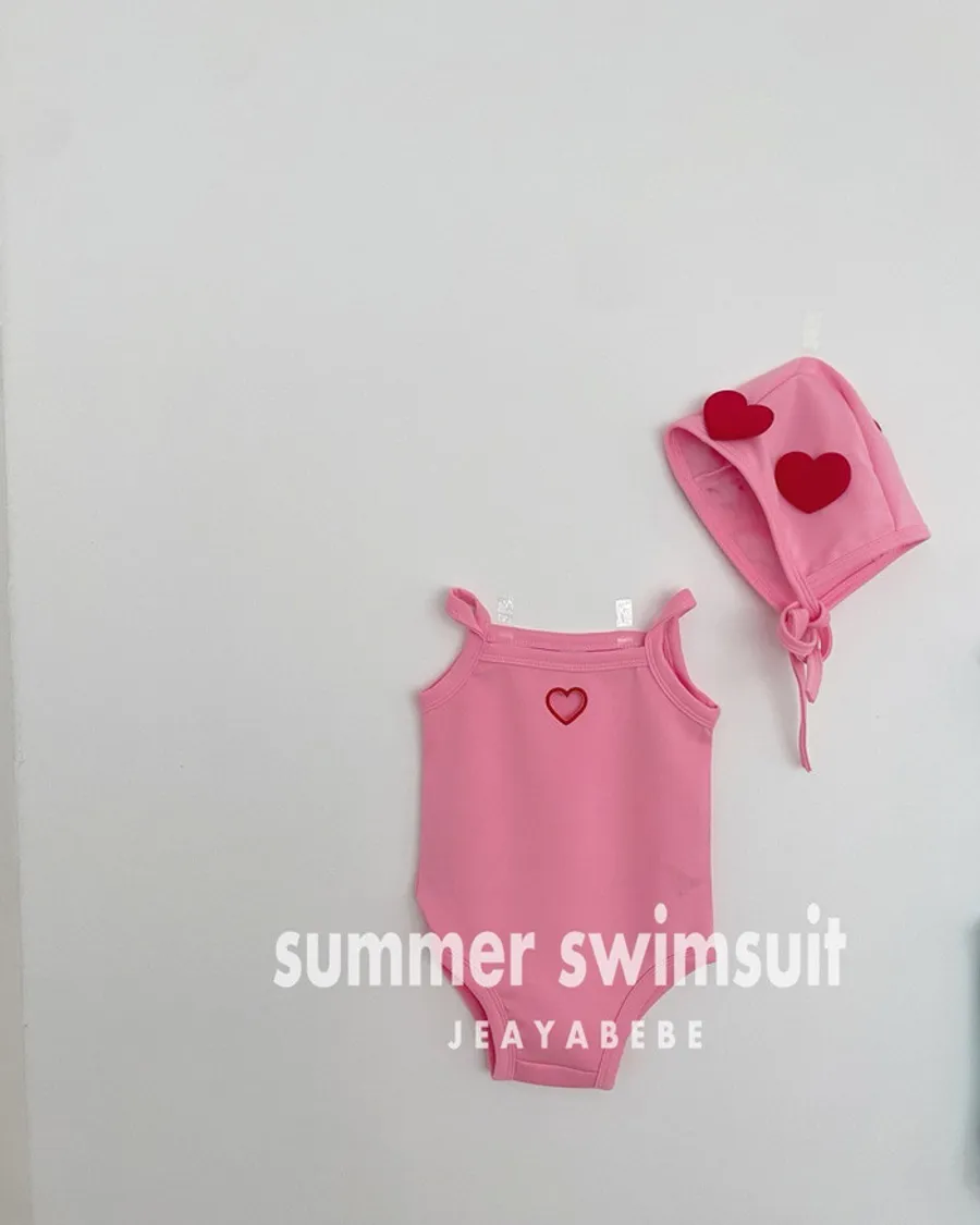 26S001- 簍空小愛心細肩泳裝(含帽)