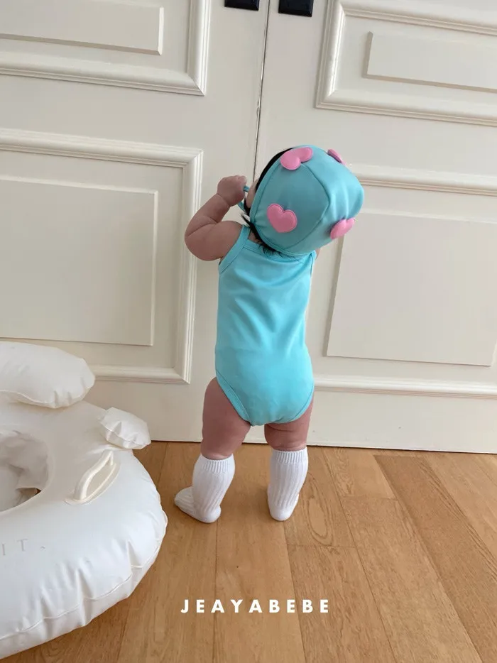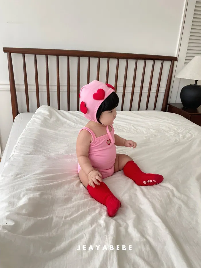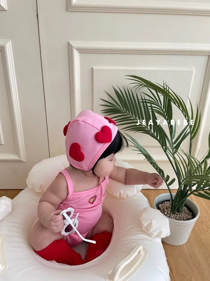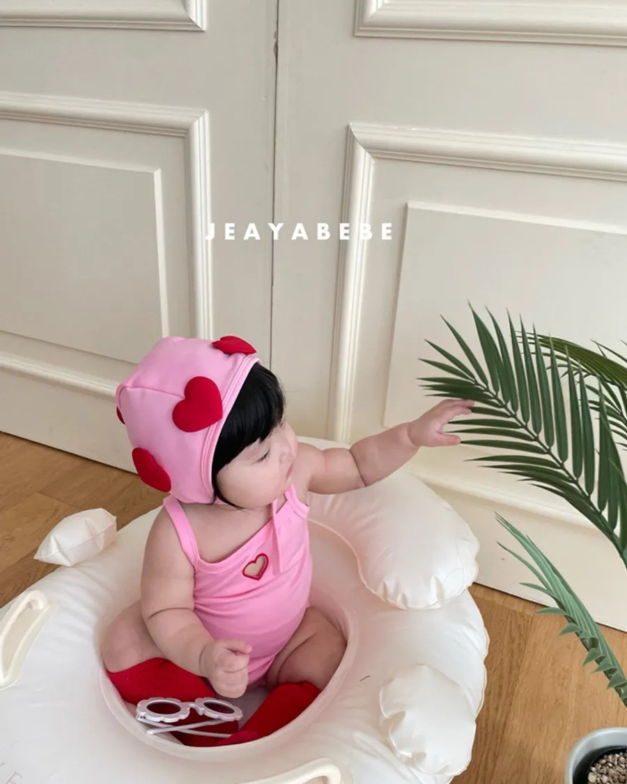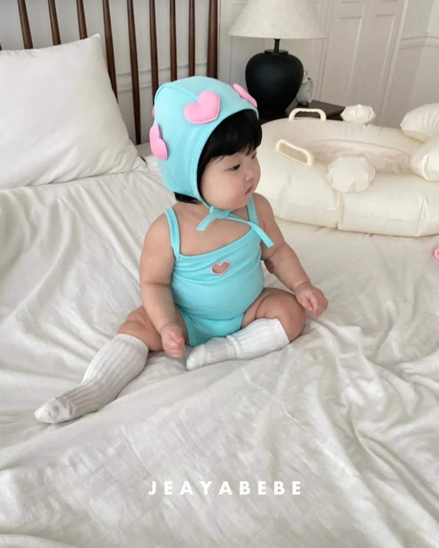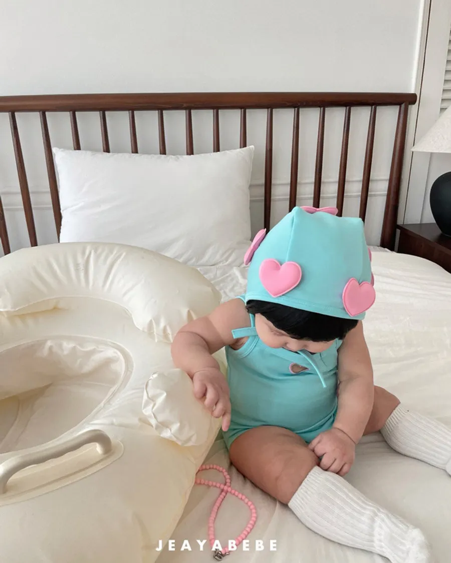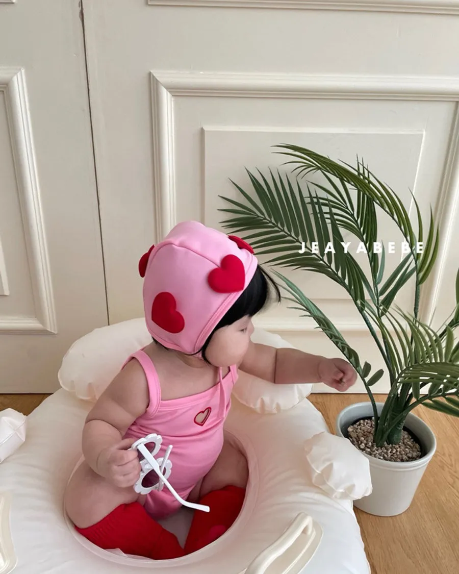 26S001- 簍空小愛心細肩泳裝(含帽)