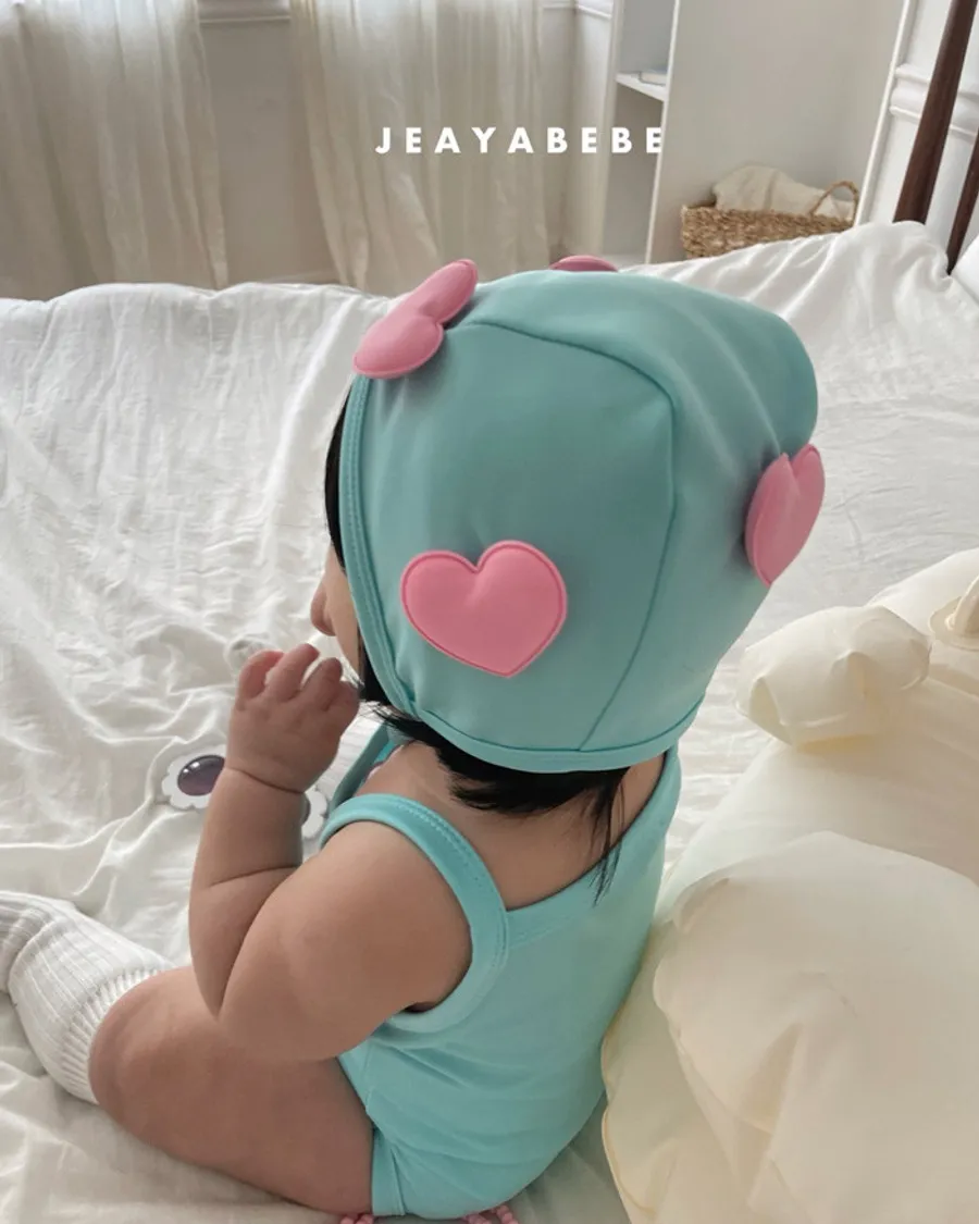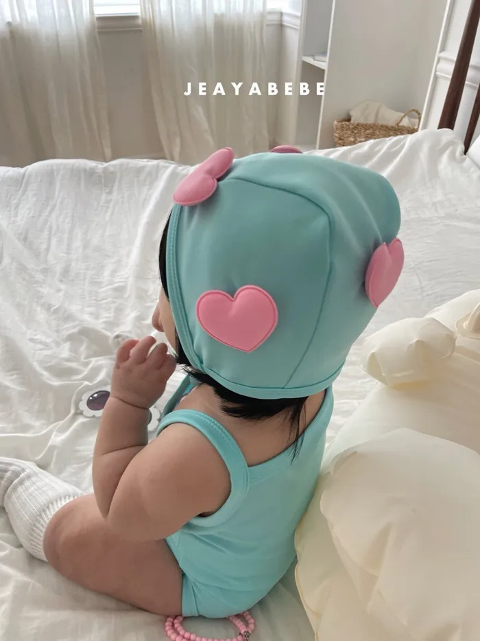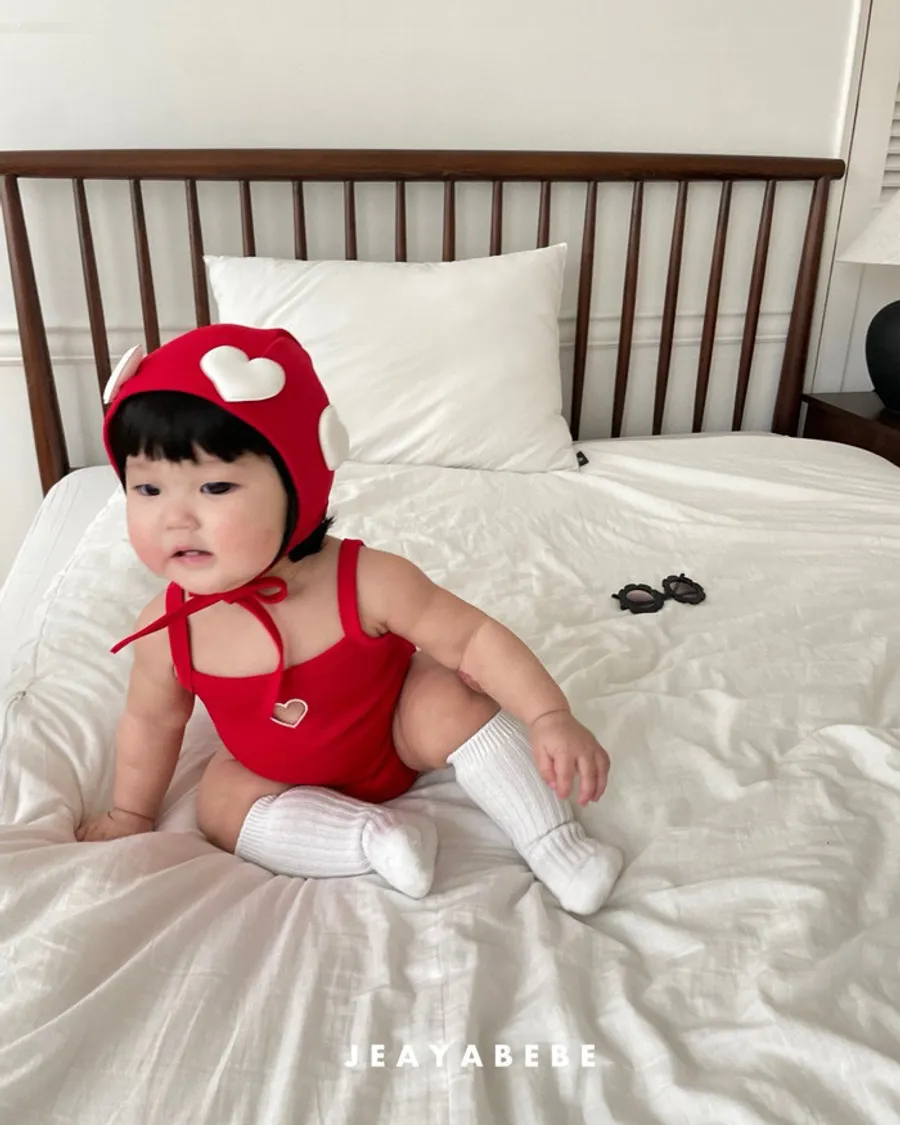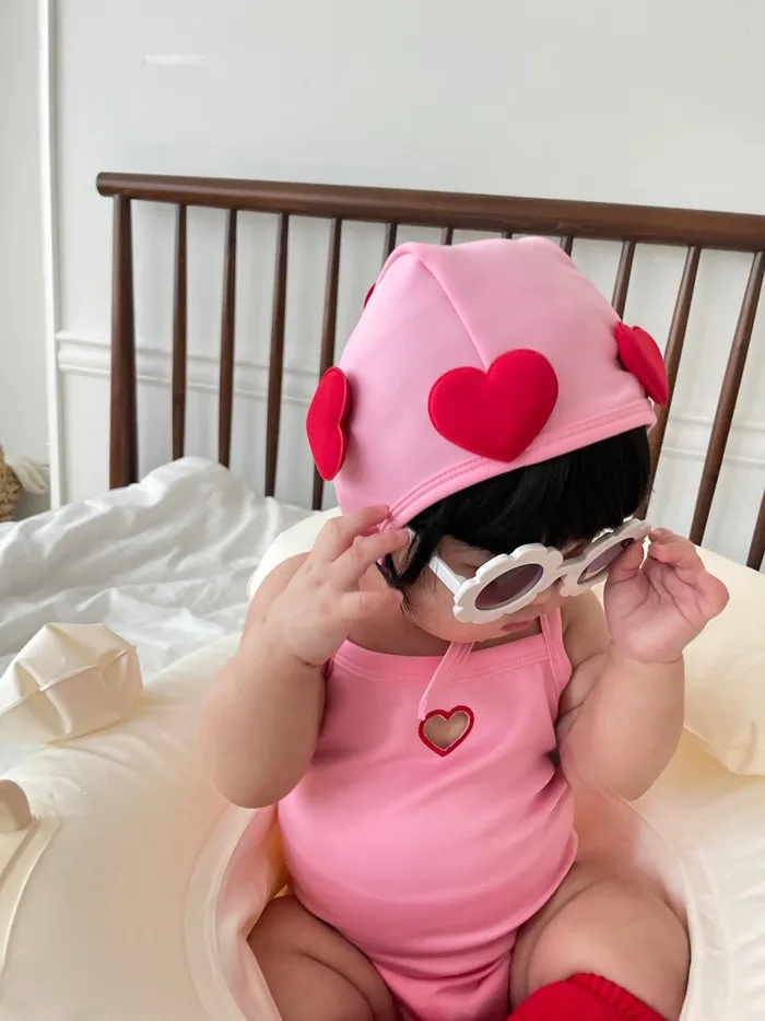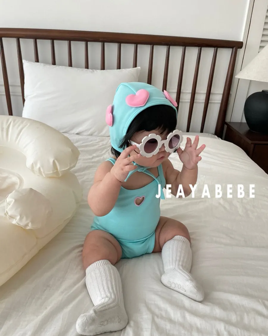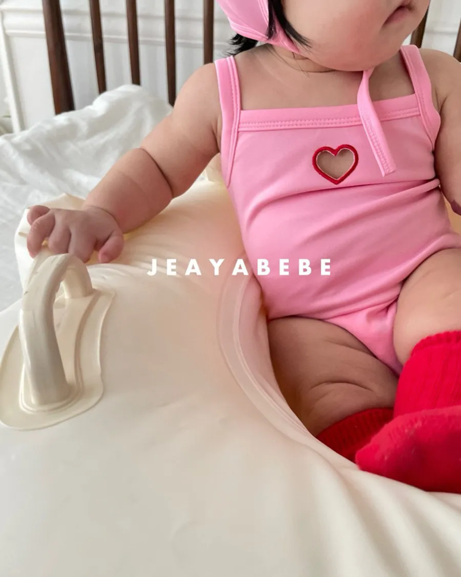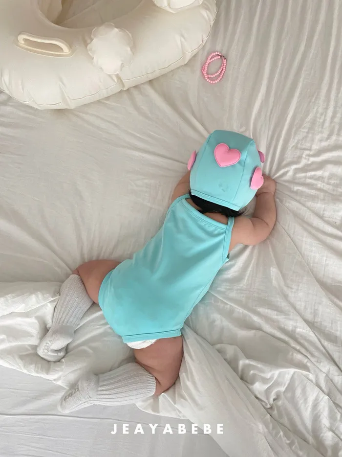 26S001- 簍空小愛心細肩泳裝(含帽)