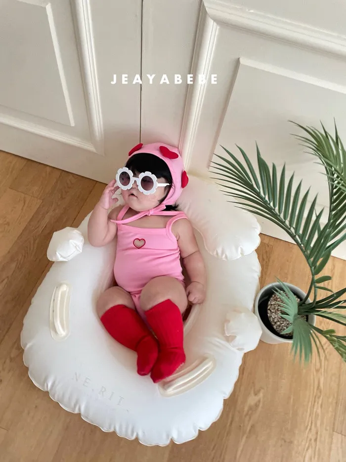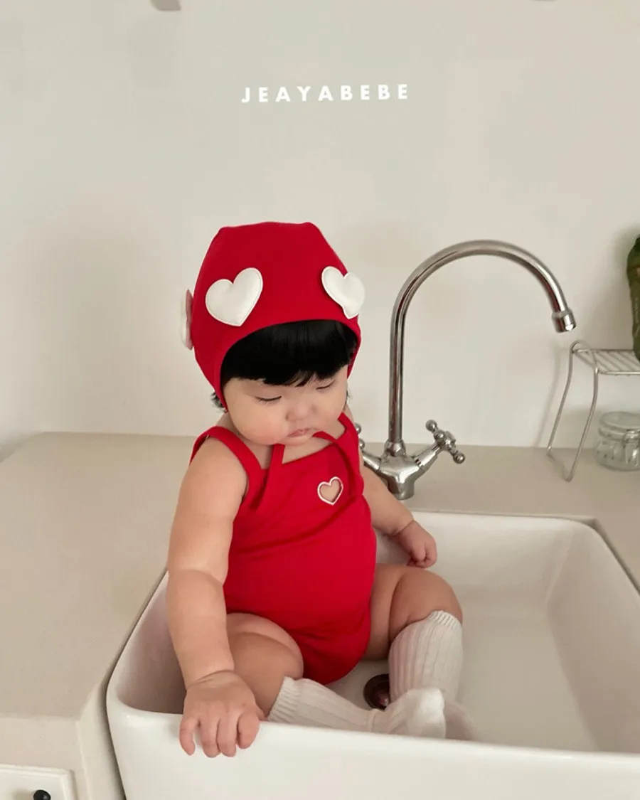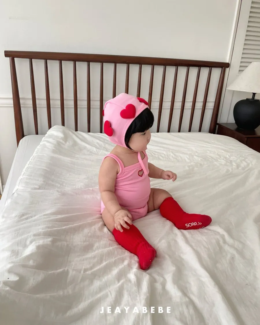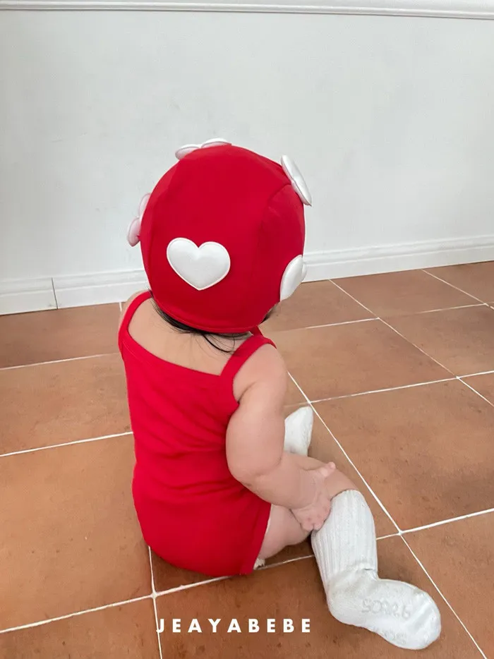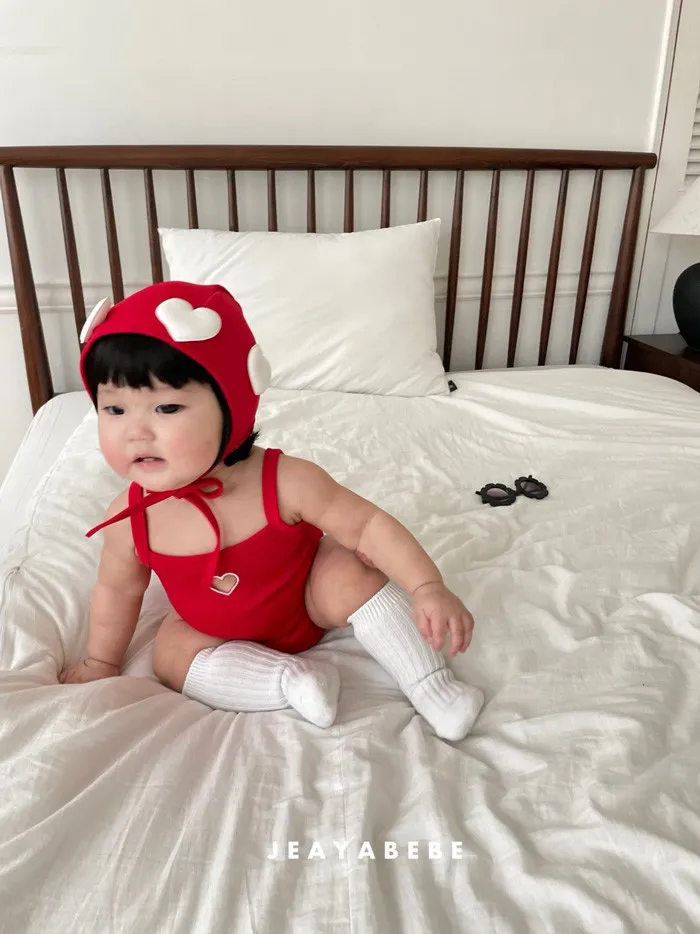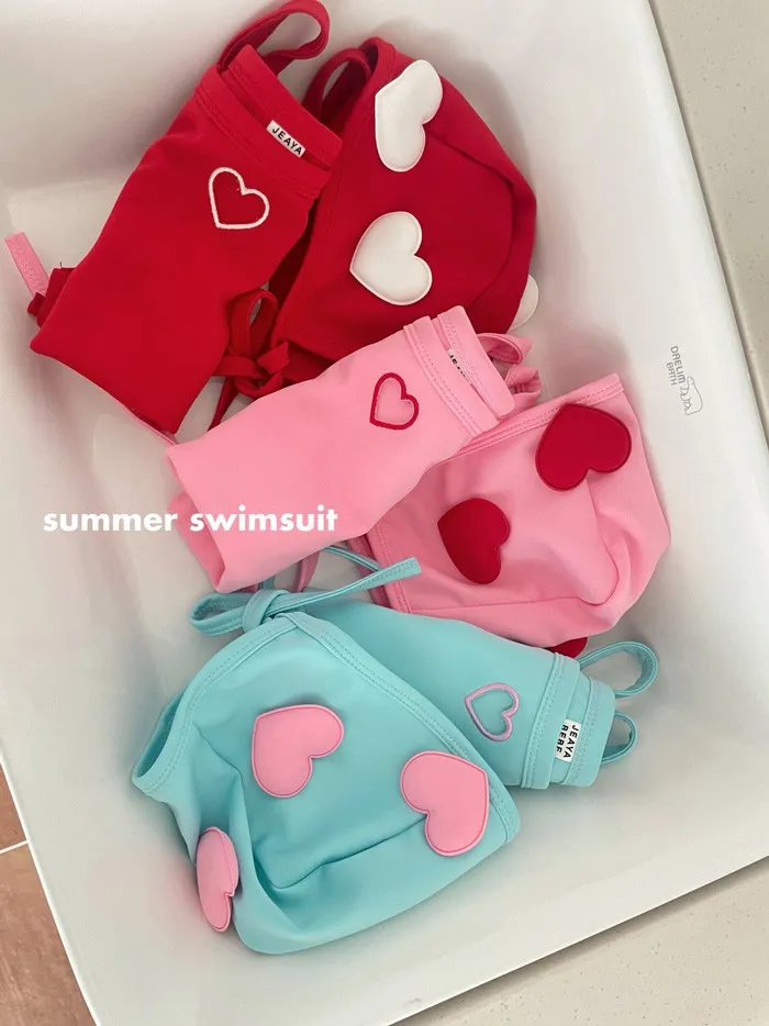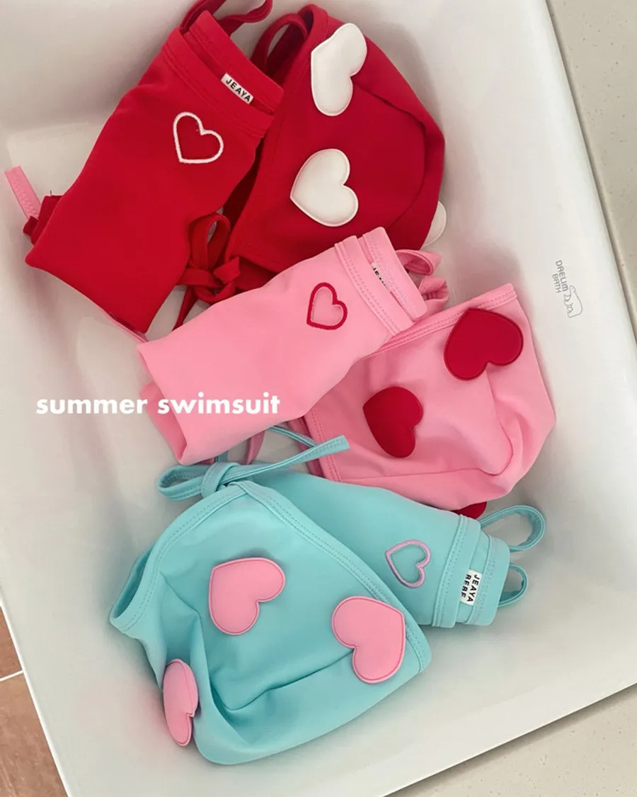 26S001- 簍空小愛心細肩泳裝(含帽)
