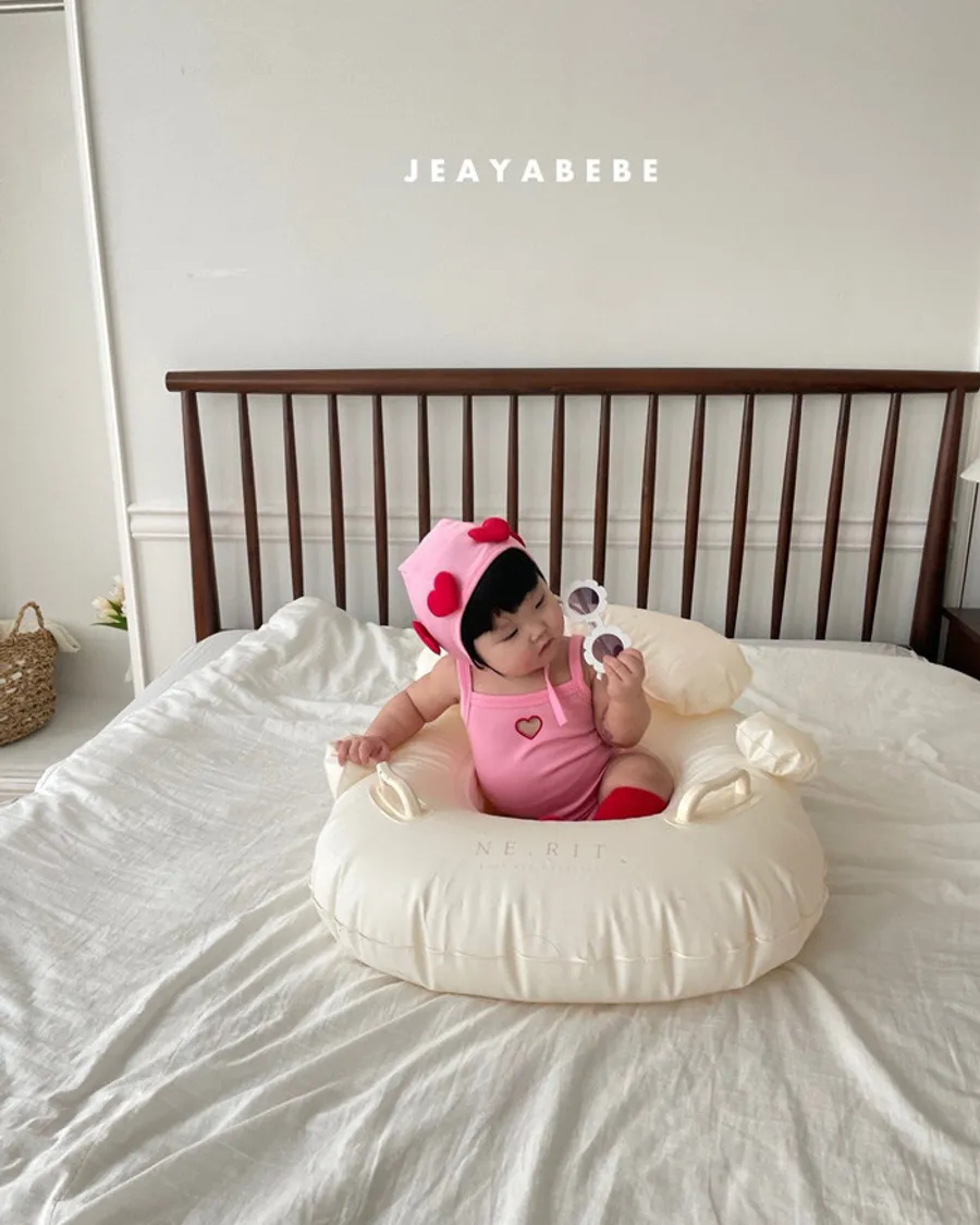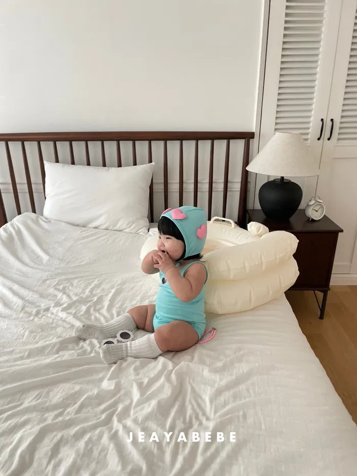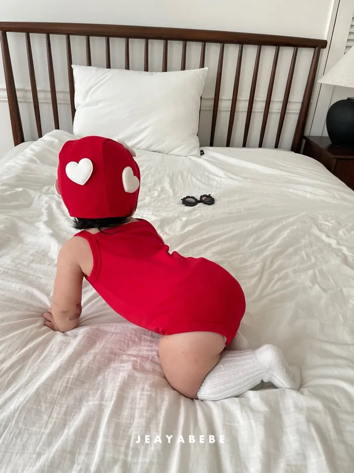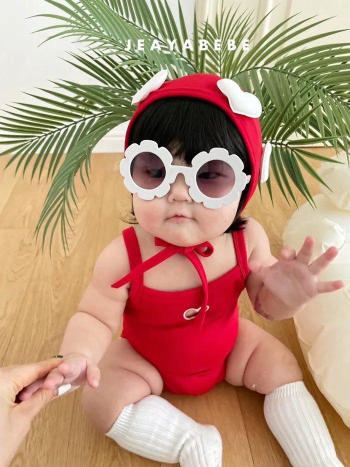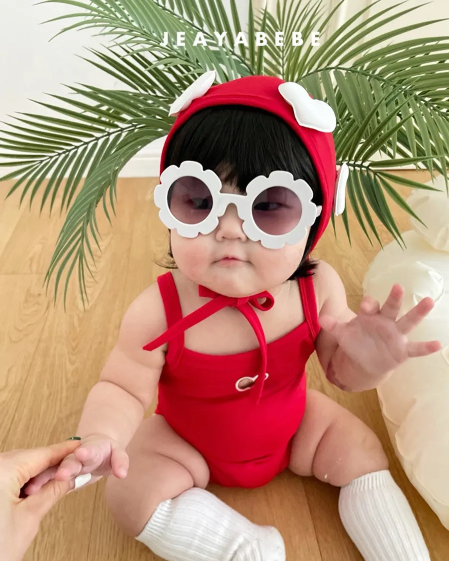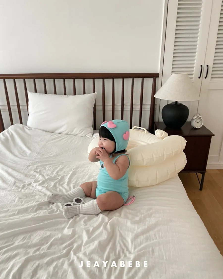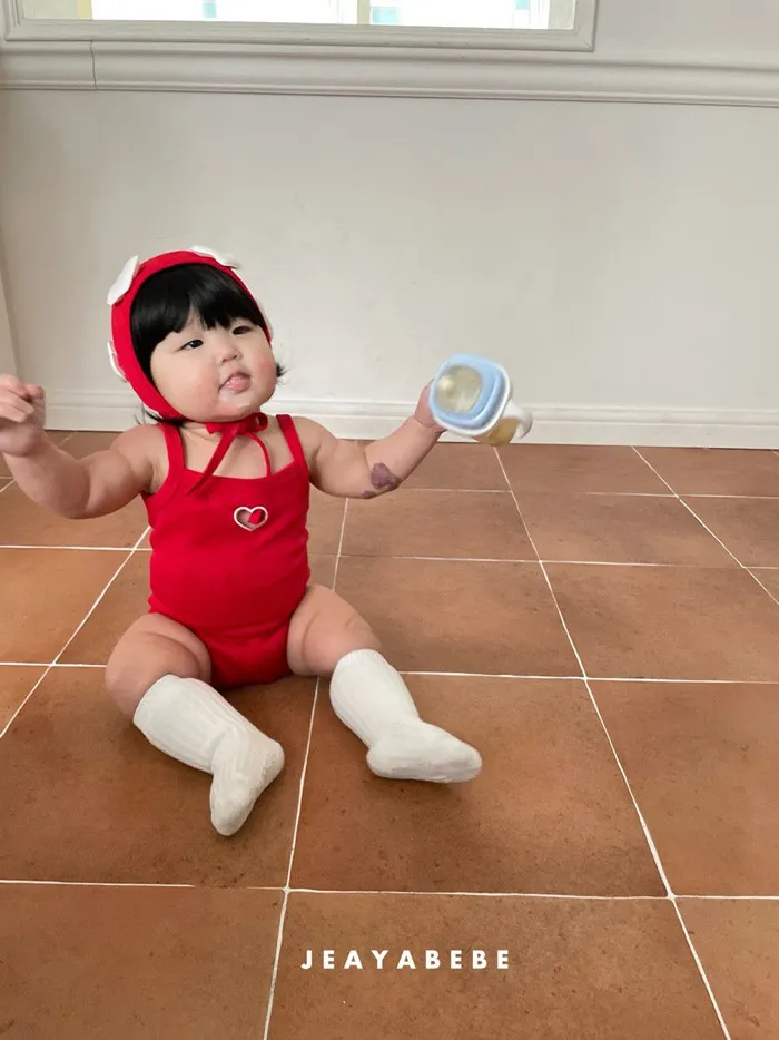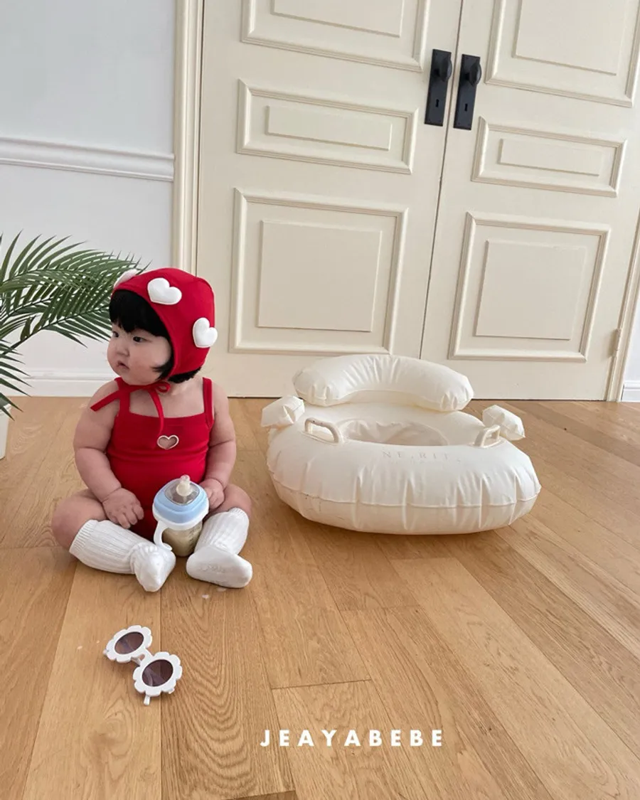 26S001- 簍空小愛心細肩泳裝(含帽)