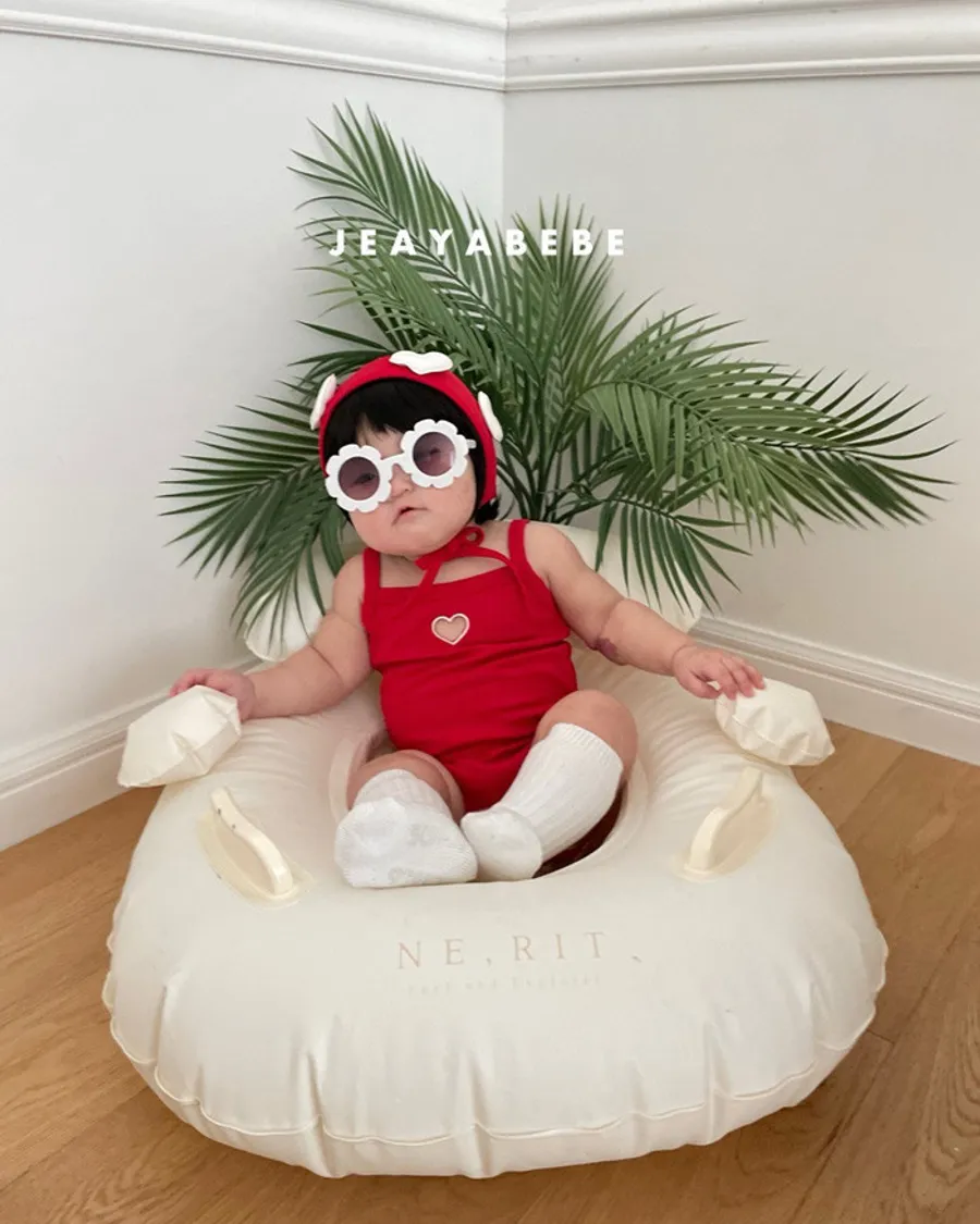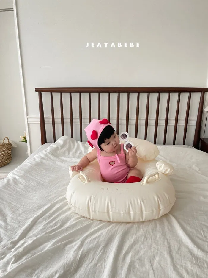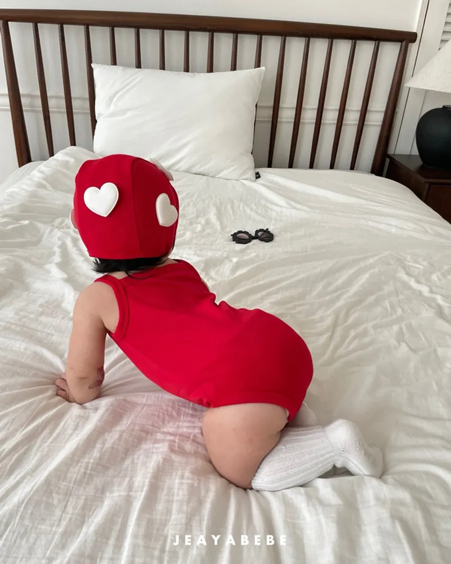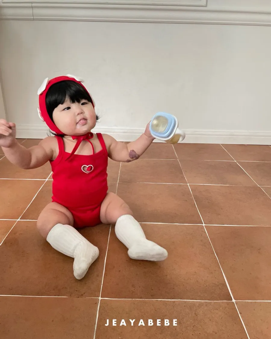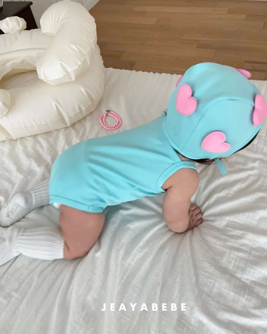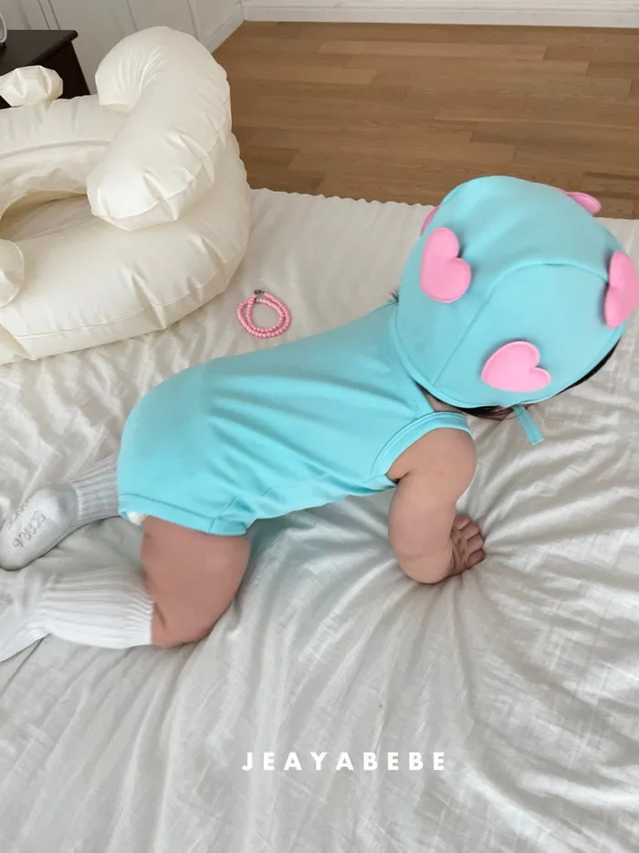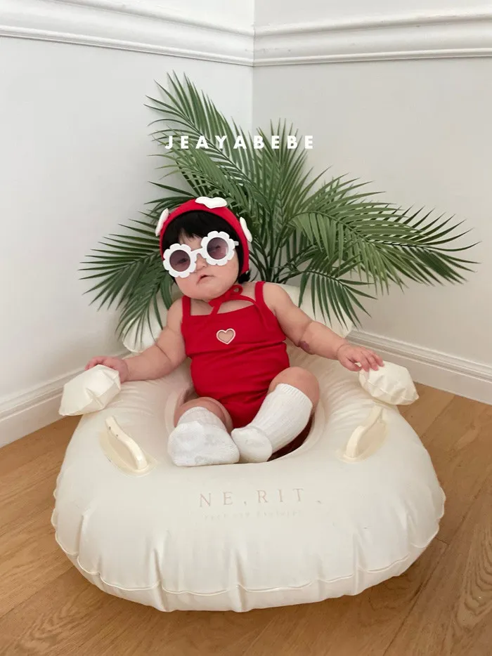 26S001- 簍空小愛心細肩泳裝(含帽)