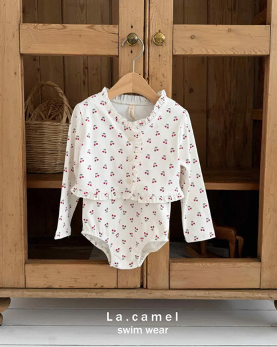 26S001- Cherry荷葉小罩衫泳衣套裝